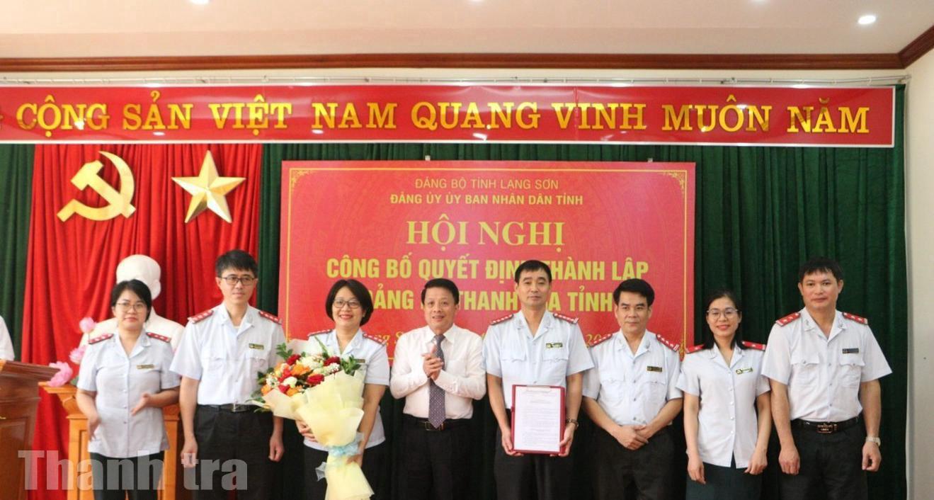 Lãnh đạo Đảng ủy UBND tỉnh Lạng Sơn trao quyết định thành lập và chúc mừng Đảng bộ Thanh tra tỉnh. Ảnh: CB