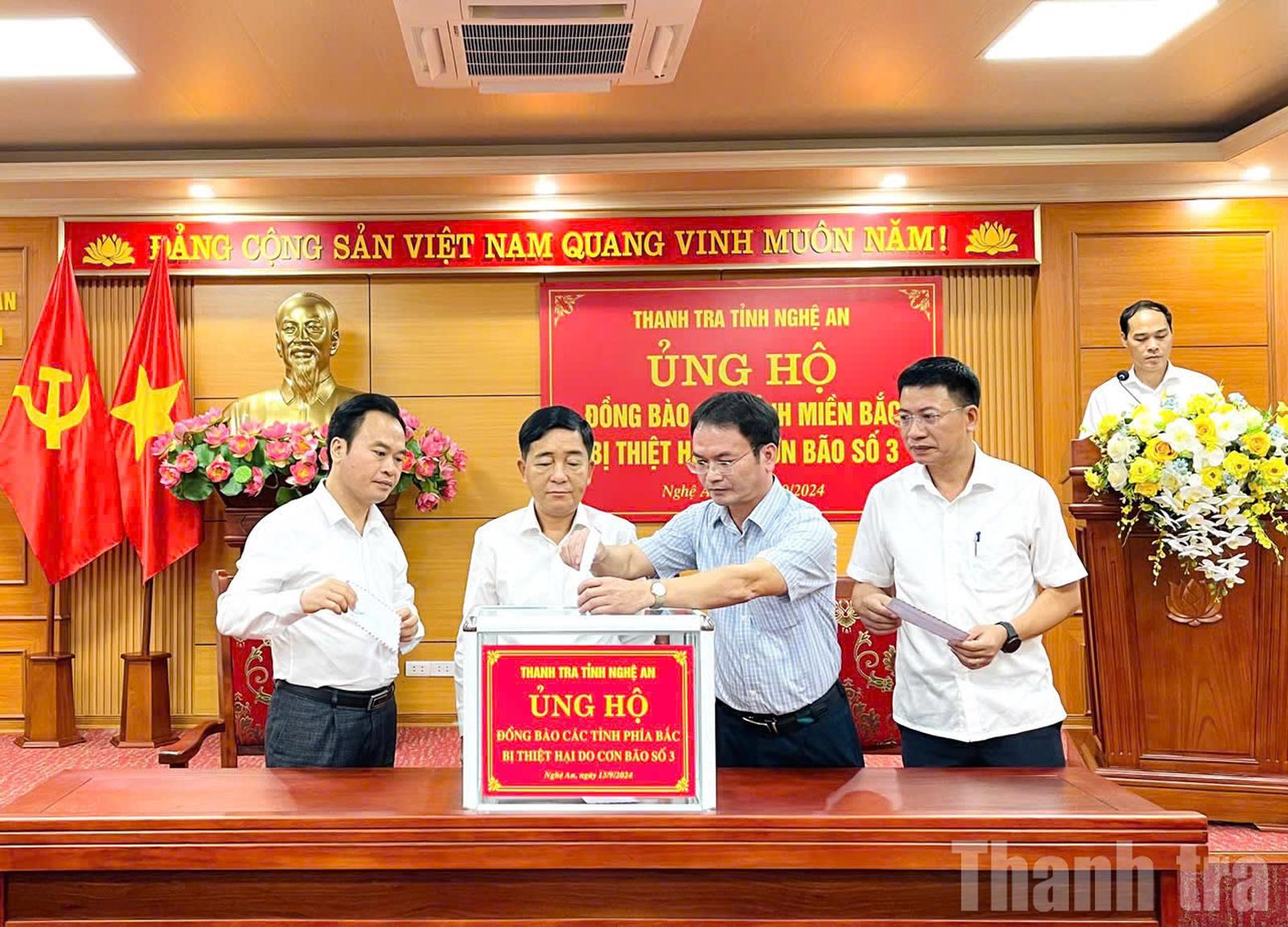 Thanh tra tỉnh Nghệ An ủng hộ đồng bào các tỉnh phía Bắc bị ảnh hưởng bởi lũ lụt. Ảnh: Văn Thanh