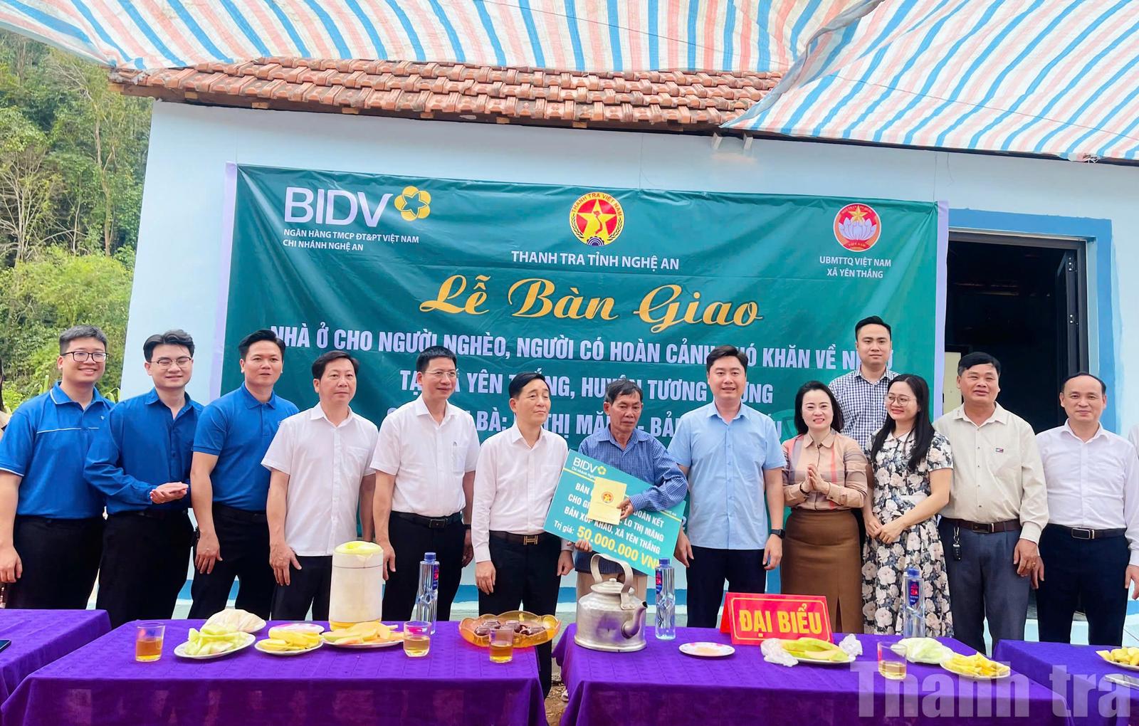 Lễ bàn giao nhà cho hộ nghèo có hoàn cảnh khó khăn do Thanh tra tỉnh Nghệ An trao tặng. Ảnh: Văn Thanh