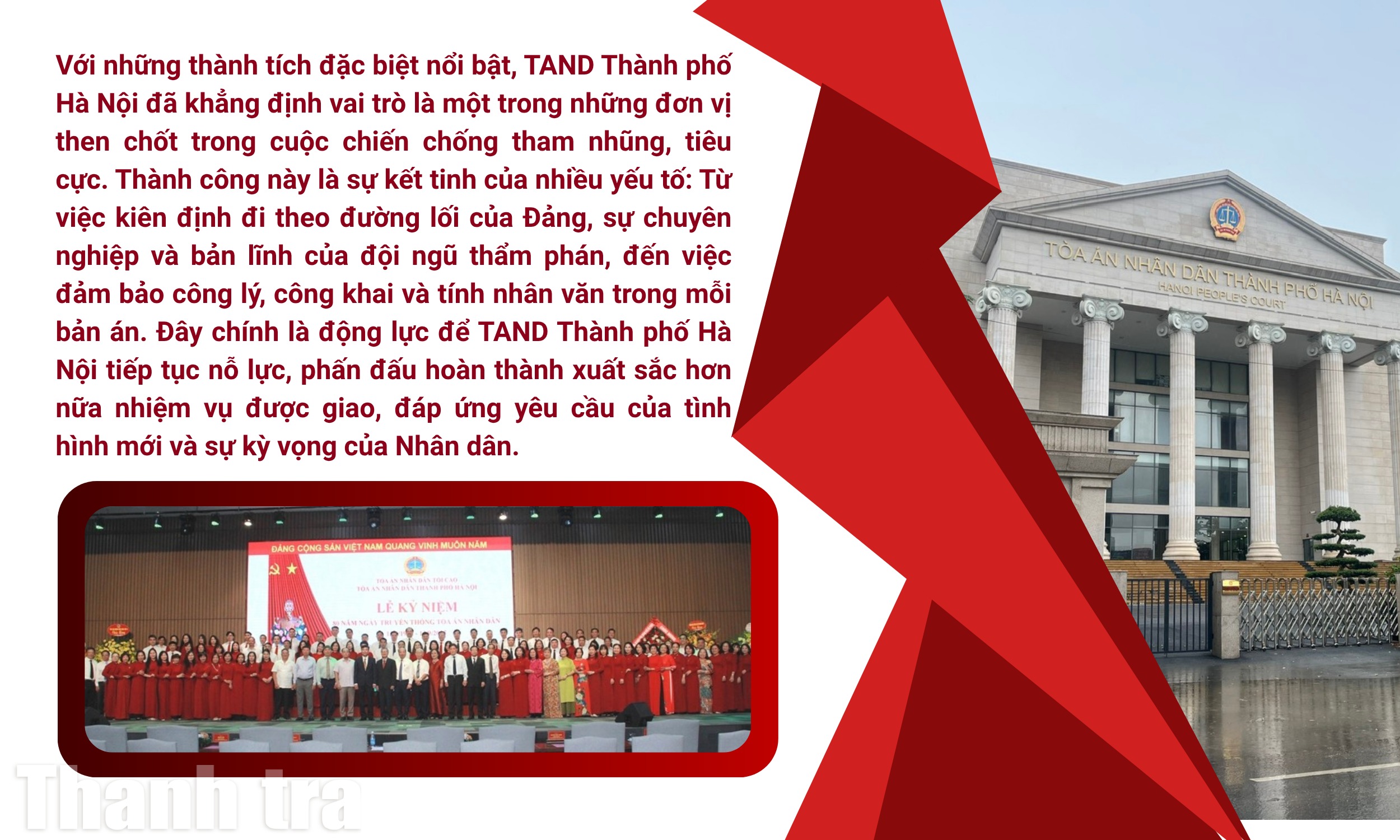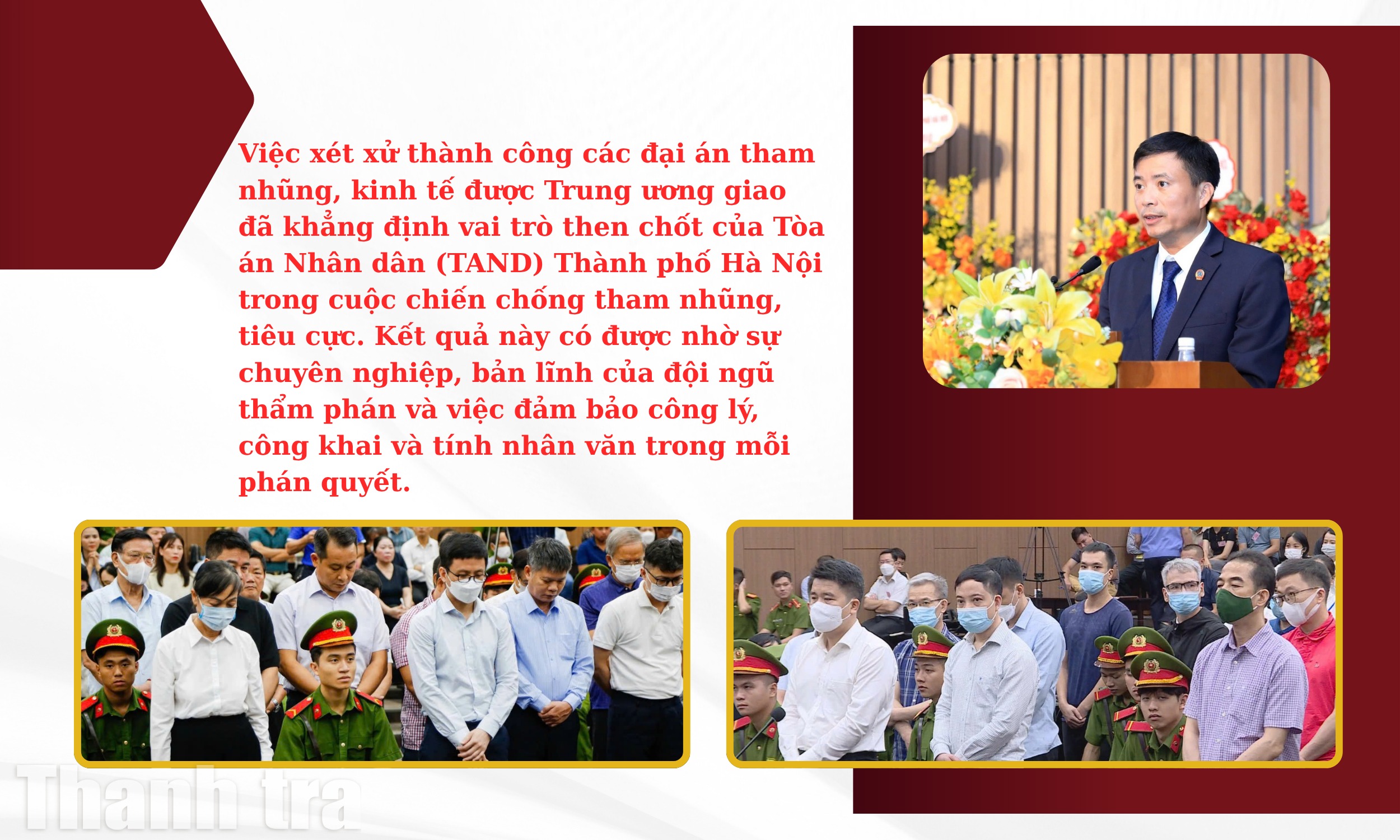 Việc đưa ra xét xử kịp thời, nghiêm minh, đúng quy định của pháp luật các đại án tham nhũng, kinh tế đã khẳng định những đóng góp tích cực vào công cuộc đấu tranh phòng, chống tội phạm nói chung, phòng, chống tham nhũng, lãng phí, tiêu cực nói riêng của Tòa án Thủ đô.