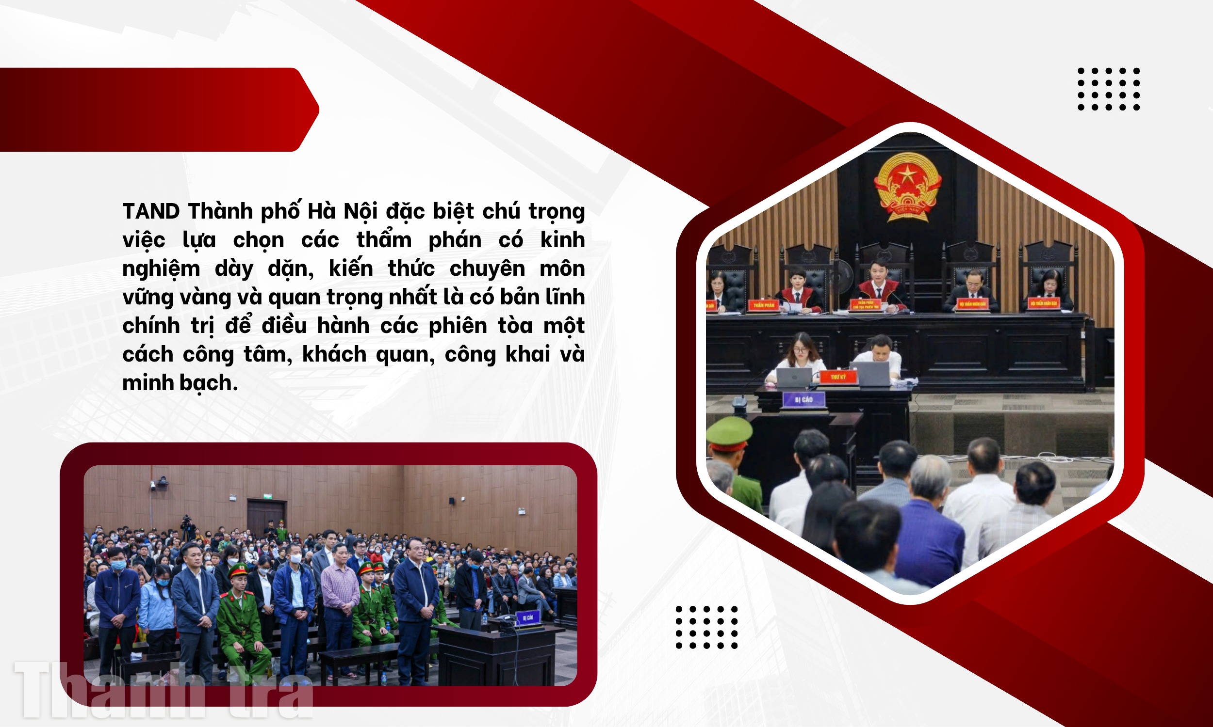 Đáng chú ý, tất cả các phiên tòa xét xử đại án tham nhũng, kinh tế của TAND TP Hà Nội đều được công bố thông tin một cách công khai, minh bạch. Việc tạo điều kiện tối đa cho các cơ quan báo chí theo dõi, đưa tin không chỉ giúp người dân cả nước nắm bắt diễn biến, kết quả xét xử mà còn góp phần đảm bảo tính giám sát của các tổ chức xã hội và Nhân dân đối với hoạt động tư pháp. Chính sự công khai này đã tạo ra hiệu ứng răn đe, phòng ngừa tội phạm.