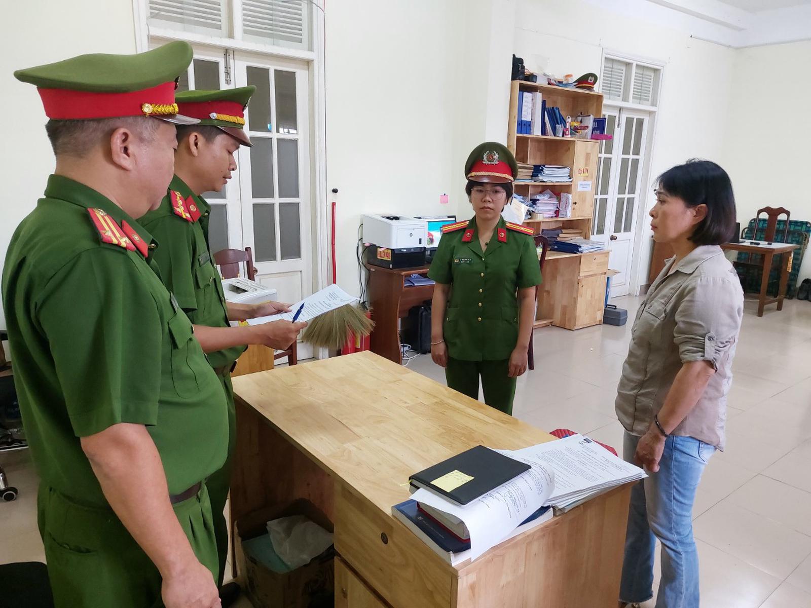 Công an thực hiện lệnh bắt tạm giam nghi phạm Nguyễn Thuý Hà. Ảnh: HH