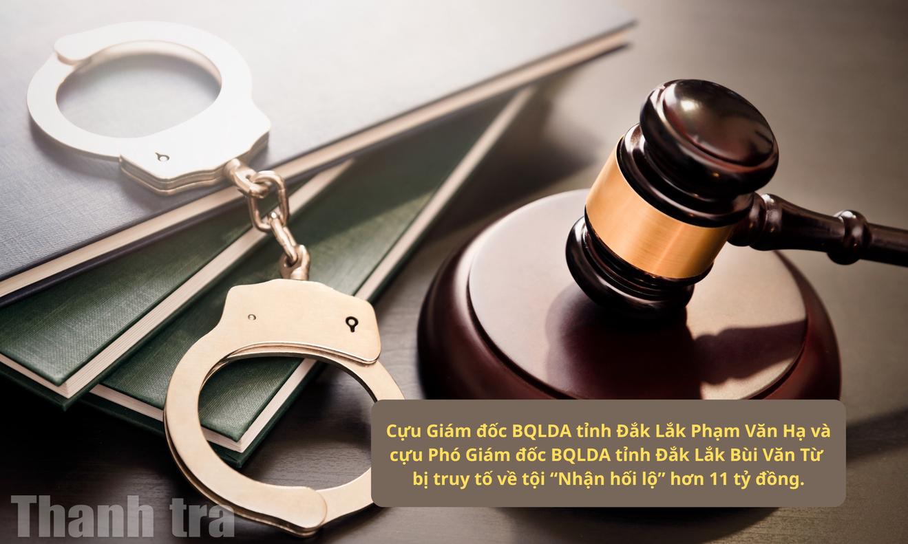 Cụ thể, cùng bị truy tố về tội “Nhận hối lộ” có các bị can Phạm Văn Hạ (cựu Giám đốc BQLDA tỉnh Đắk Lắk), Bùi Văn Từ (cựu Phó Giám đốc BQLDA tỉnh Đắk Lắk).