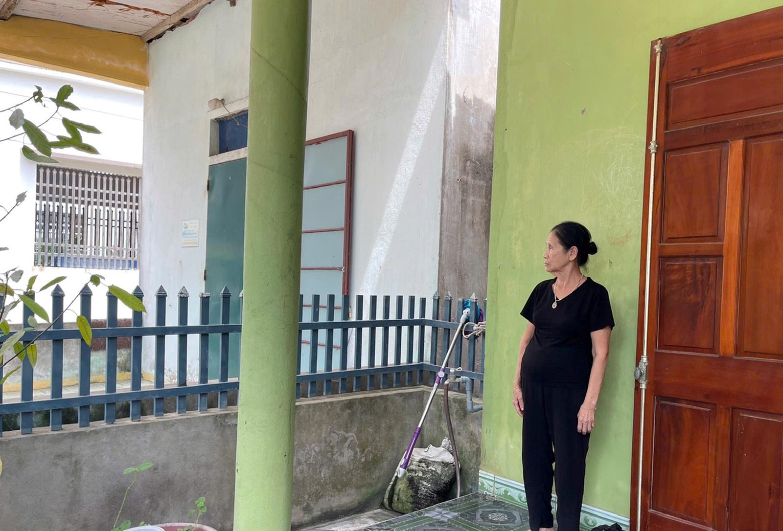 Cụ Báu nhìn sang ngôi nhà hàng xóm mà cụ đang khởi kiện. Ảnh: Lê Hữu Chính
