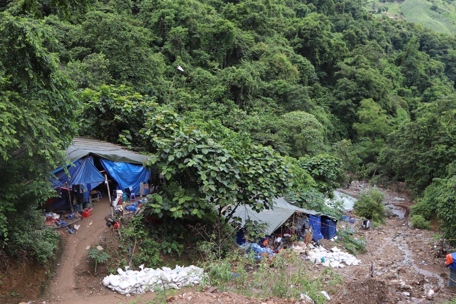 Hiện trường nơi các đối tượng dựng lán trại để khai thác vàng trái phép