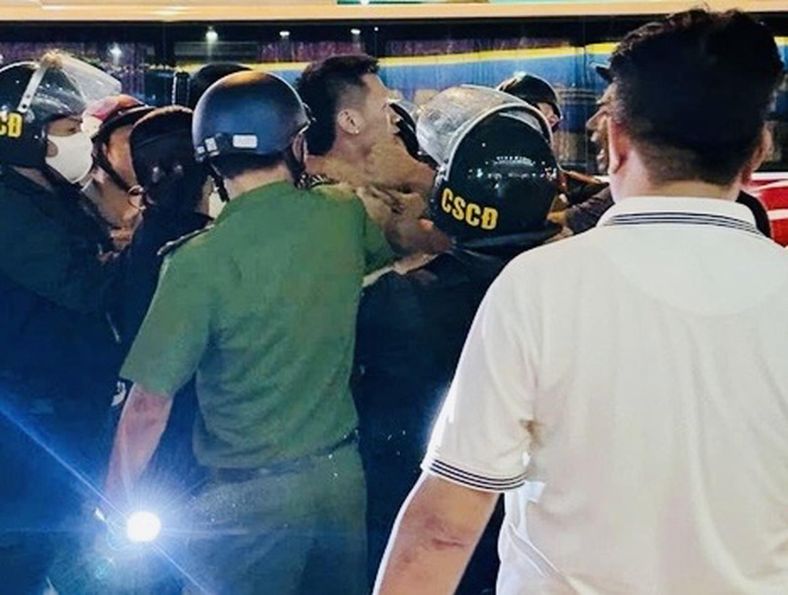 Cao Văn Tuấn bị lực lượng cảnh sát cơ động khống chế vì đã có hành vi chống người thi hành công vụ. Ảnh: Cơ quan cảnh sát điều tra