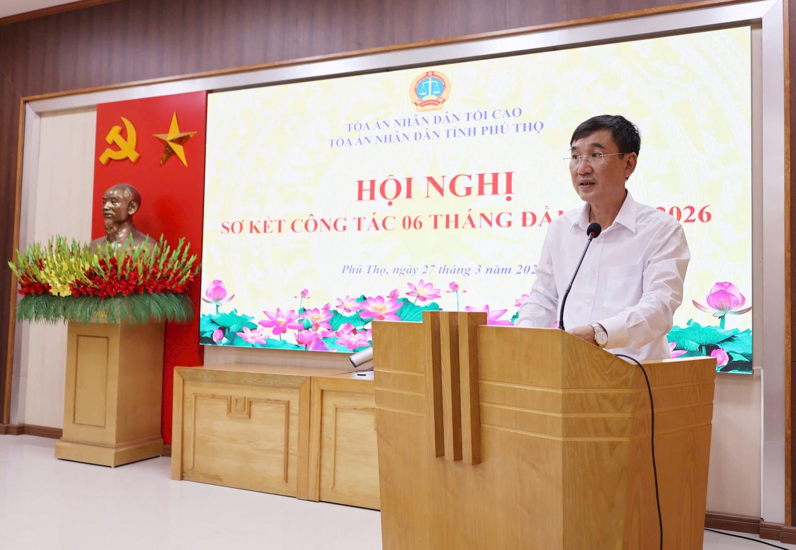 Chánh án TAND tỉnh Phú Thọ Lê Văn Tuấn phát biểu chỉ đạo tại Hội nghị sơ kết 6 tháng đầu năm 2026. Ảnh: CTV