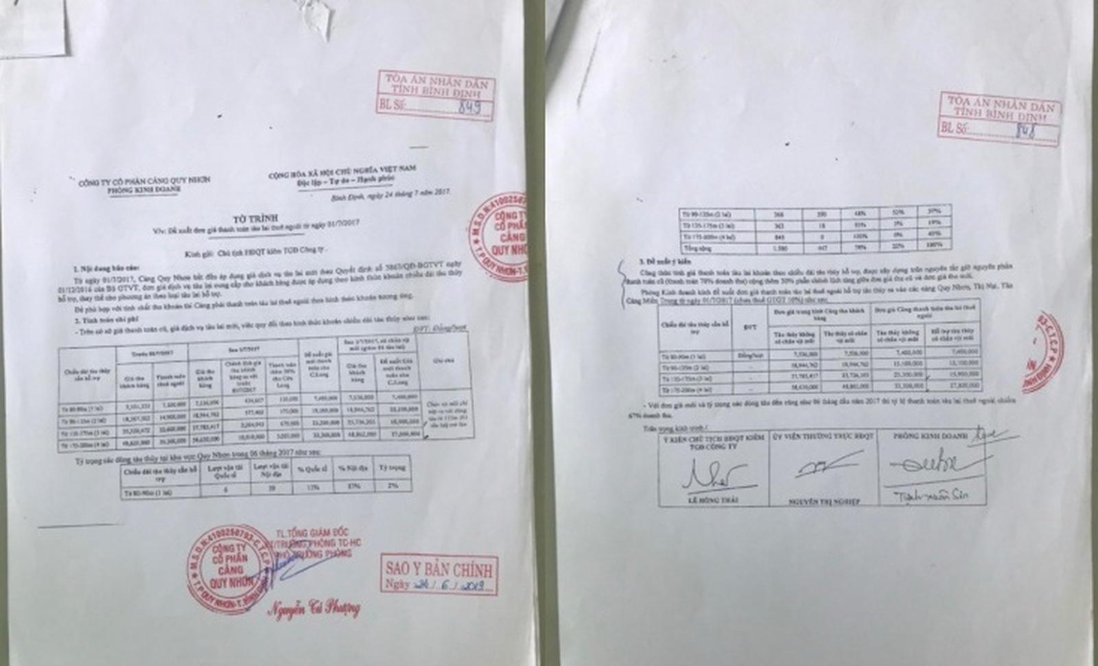 Tờ trình có dấu hiệu bất thường và Cảng Quy Nhơn từ chối cung cấp bản chính cho TAND tỉnh Bình Định. Ảnh: HH