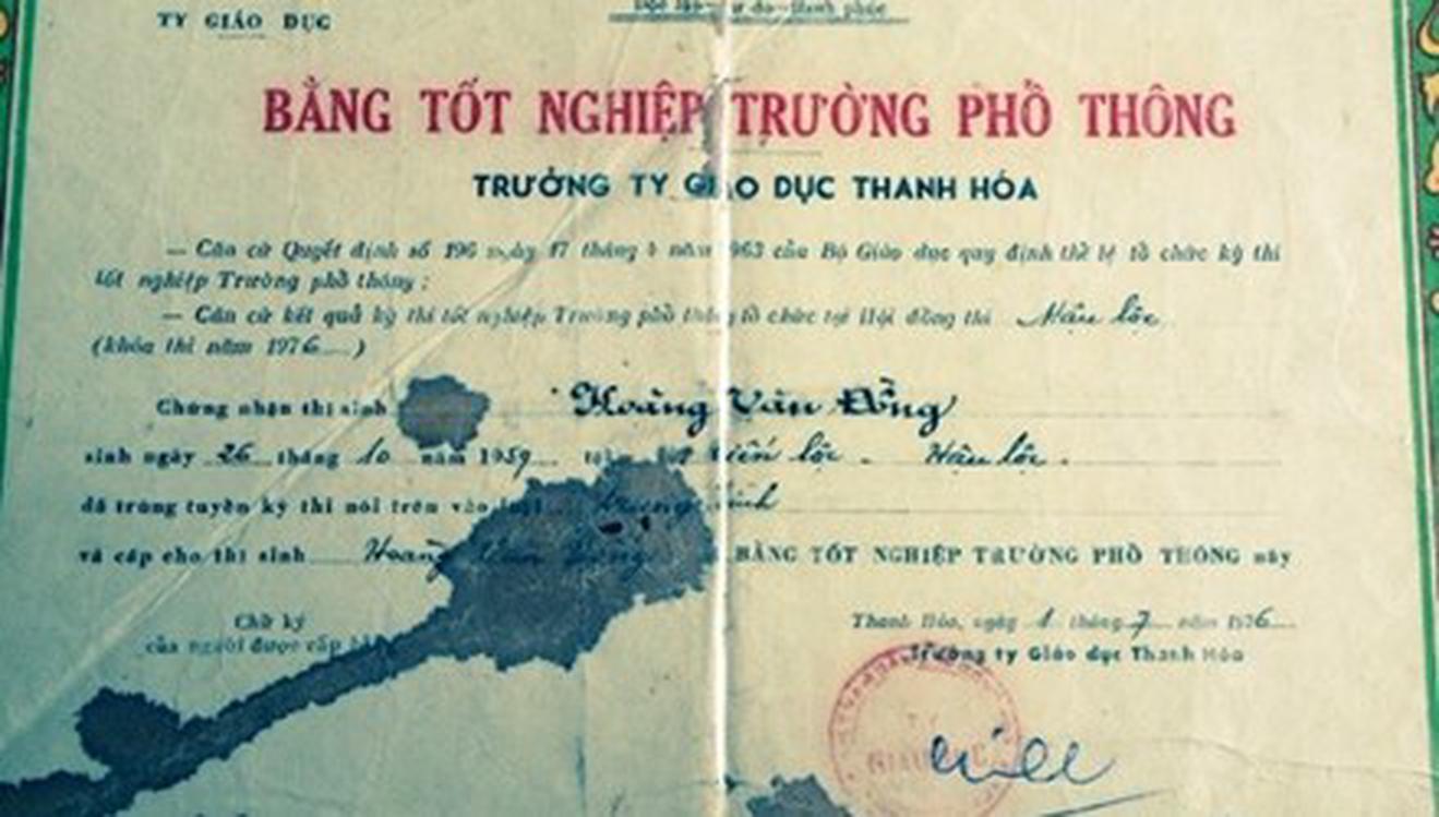 Xác minh thông tin tại Sở Giáo dục và Đào tạo Thanh Hóa được biết, kỳ thi tốt nghiệp phổ thông tại Hội đồng Thi huyện Hậu Lộc năm 1976 không có ai tên là Hoàng Văn Đồng. Tấm bằng tốt nghiệp phổ thông số hiệu 328 (mang tên Hoàng Văn Đồng) là bằng thật nhưng nó được cấp cho ông Hoàng Văn Công (sinh ngày 26/10/1959, quê xã Tiến Lộc, huyện Hậu Lộc).