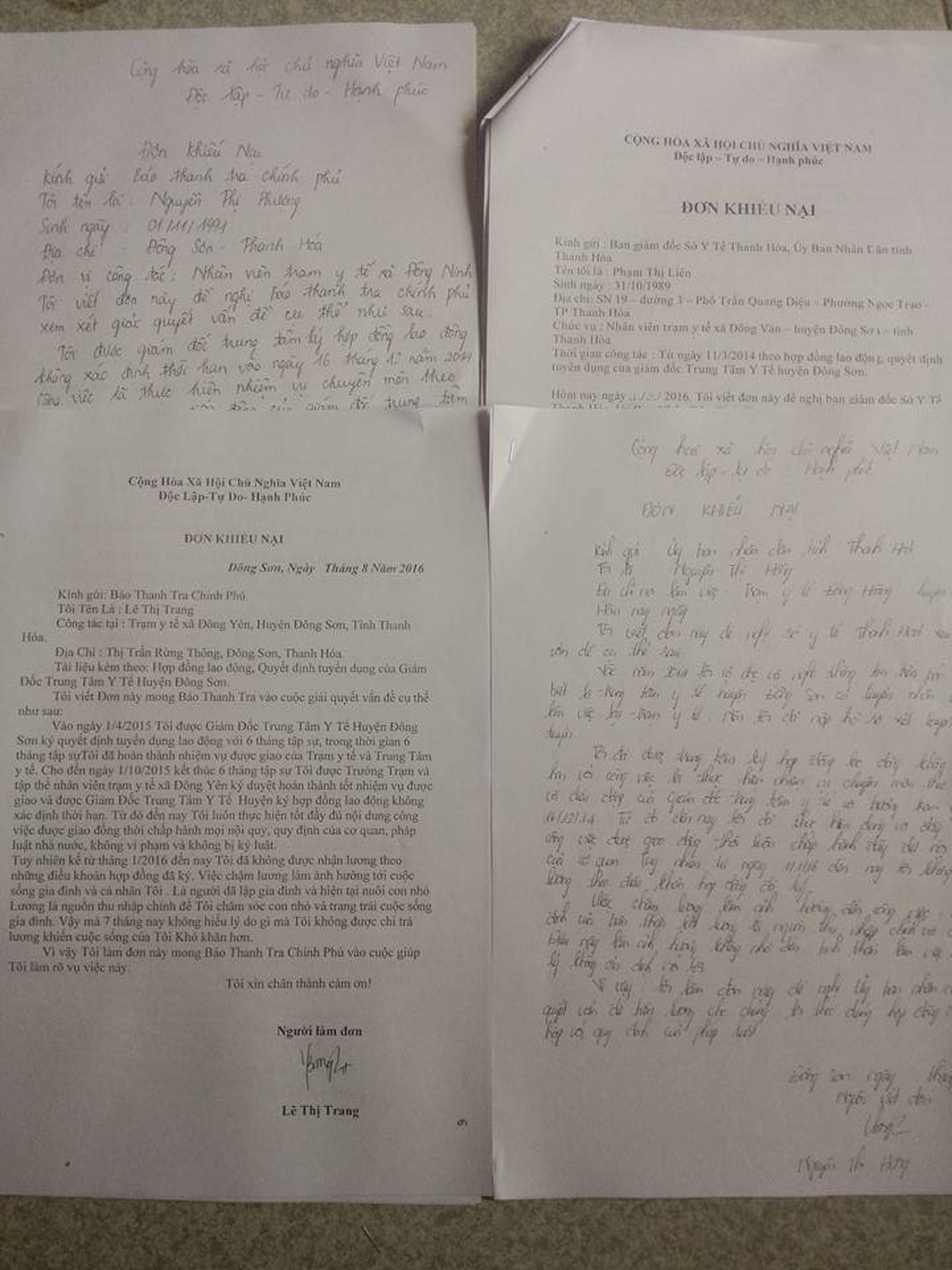 Làm việc không có lương, nhiều cán bộ y tế hyện Đông Sơn gửi đơn cầu cứu Chủ tịch UBND tỉnh Thanh Hóa và báo chí. Ảnh: Văn Thanh
