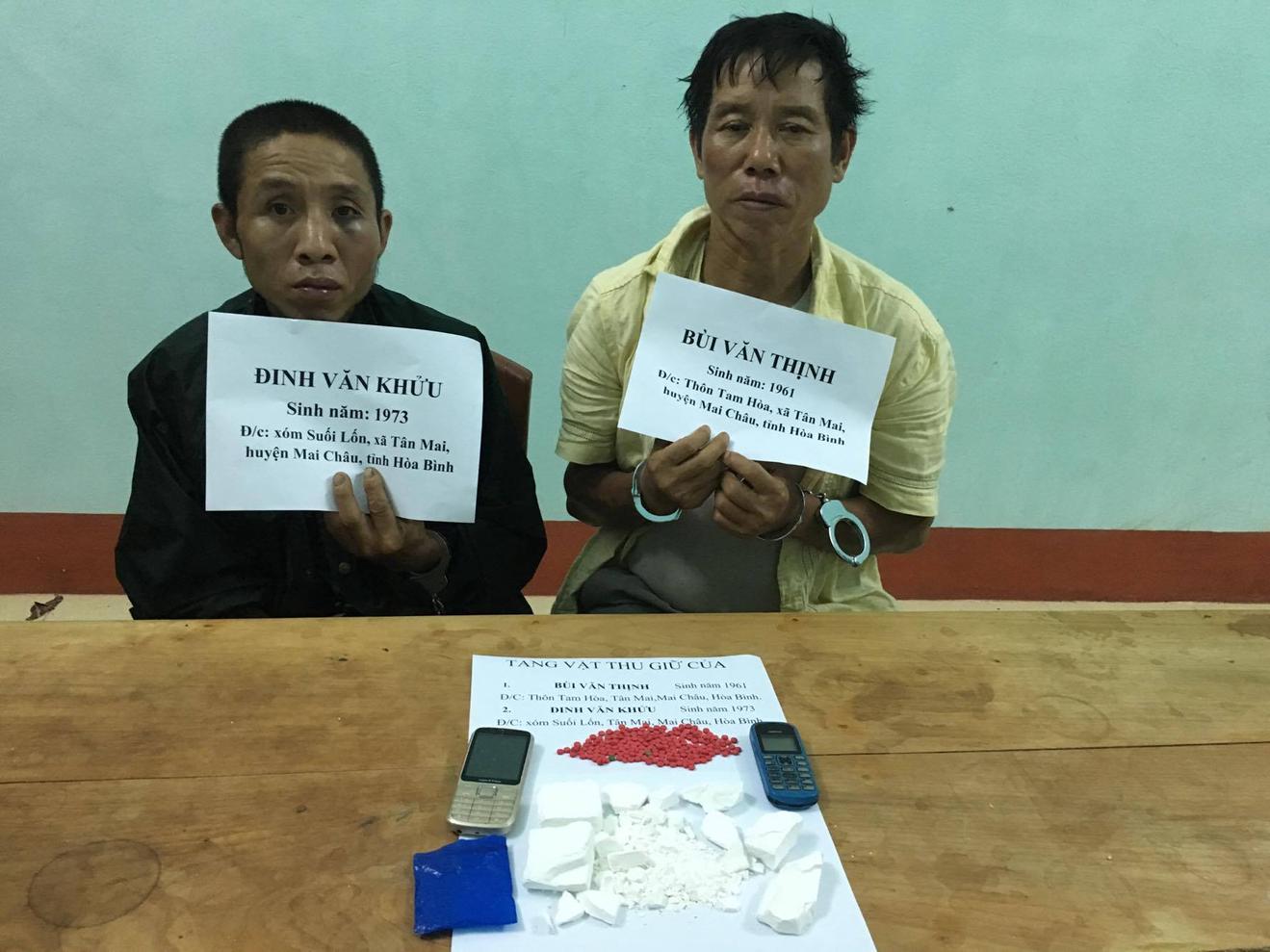 (Thanh tra) - Sau một thời gian theo dõi và lập án đấu tranh, Công an huyện Quan Hóa, tỉnh Thanh Hóa đã điều tra, làm rõ và bắt quả tang 2 đối tượng Bùi Văn Thịnh (sinh năm 1961) và Đinh Văn Khửu (sinh năm 1973), đều ở huyện Mai Châu, tỉnh Hòa Bình đang vận chuyển trái phép chất ma túy đi tiêu thụ.
