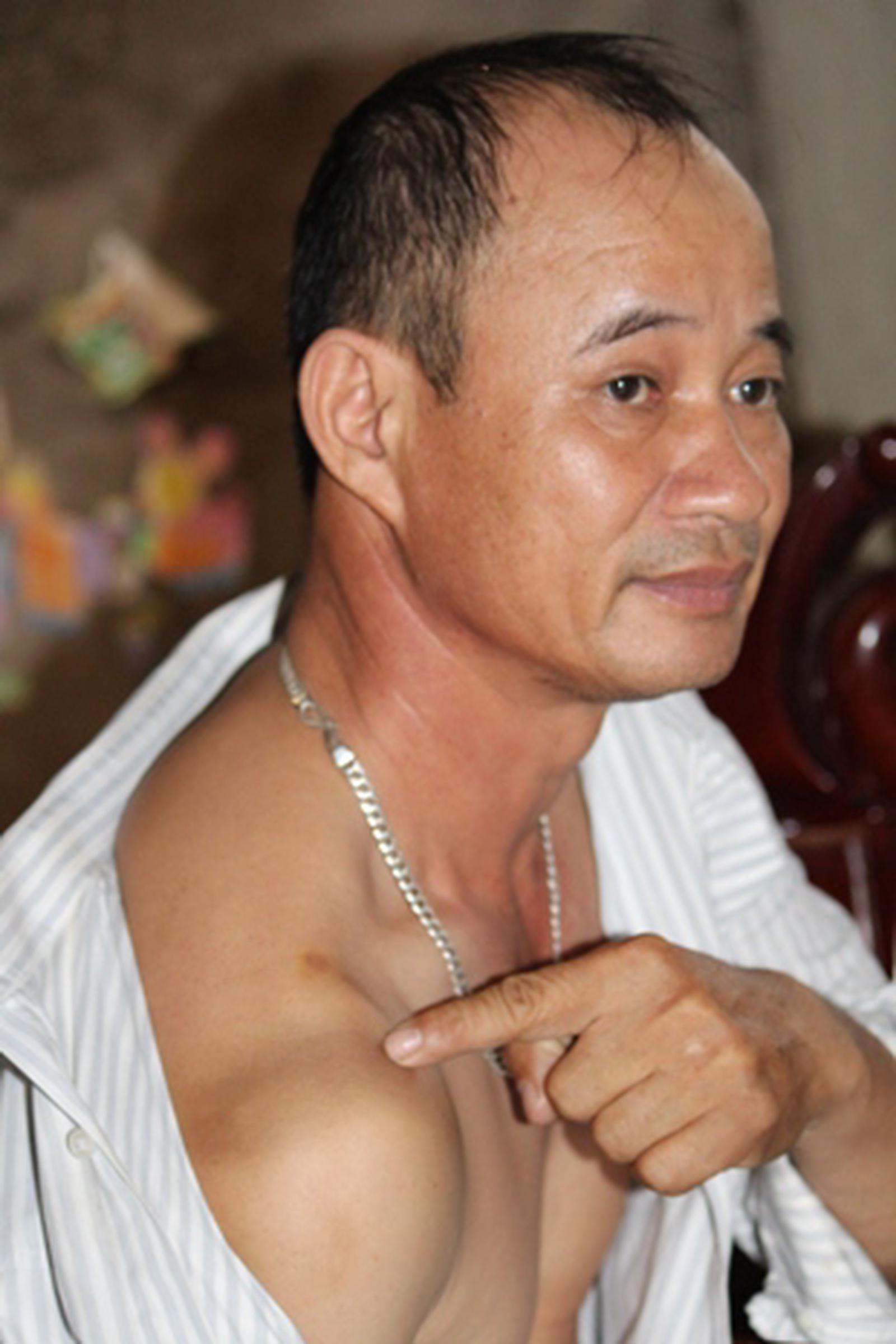 Nguyễn Văn Chung bị chém vào lưng vì tranh giành địa bàn gặt lúa. Ảnh: Văn Thanh