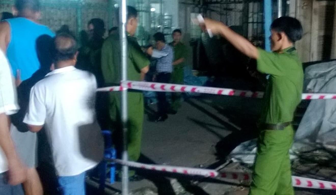 Công an khám nghiệm hiện trường, nơi xảy ra vụ việc. Ảnh: L.K.