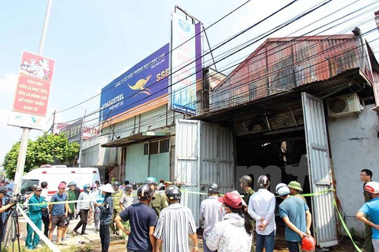 Hiện trường vụ cháy xưởng (Ảnh: PV/Vietnam+)