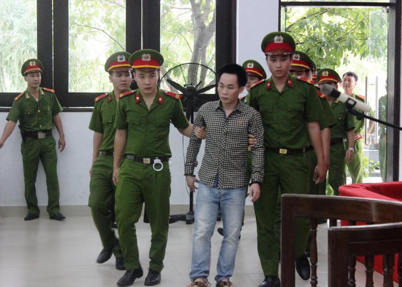 Đúng 8 giờ, đối tượng giết người được áp giải đến phòng xét xử tại hội trường B Trường Đại học Luật - Đại học Huế, trước sự chứng của đông đảo người dân tham dự phiên tòa. Hàng chục người thân của bị cáo và bị hại cũng có mặt từ rất sớm.