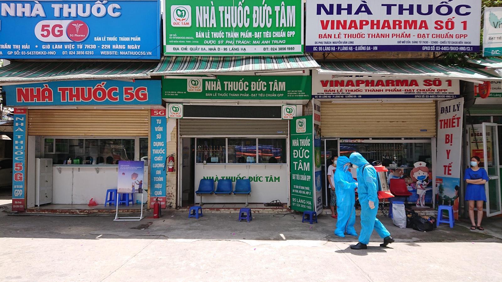 Hiện nay, tại khu vực 95 Láng Hạ có 5/6 nhà thuốc có nhân viên bị nhiễm (trừ Nhà thuốc Hatapha chưa phát hiện nhân viên bị lây nhiễm). Cả 6 nhà thuốc tại số 95 Láng Hạ đang bị đóng cửa. Trong đó, Nhà thuốc Đức Tâm đã bị Sở Y tế Hà Nội ra Quyết định 3307/QĐ-SYT đình chỉ hoạt động từ chiều ngày 20/7 sau khi có thông tin nhân viên nhà thuốc bị nhiễm.