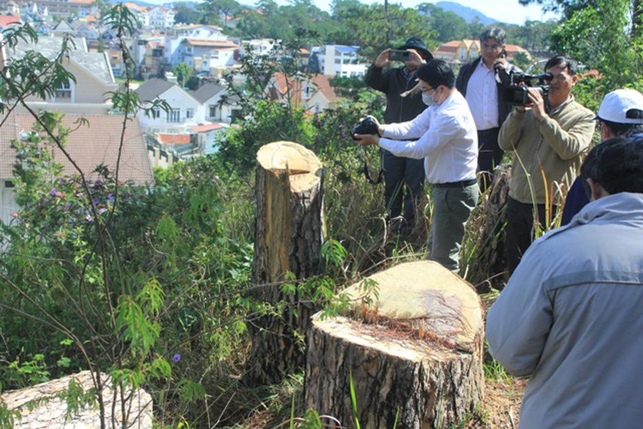 Trước đó, Báo Thanh tra đã đưa tin, sáng 22/4, Hạt Kiểm lâm TP Đà Lạt phối hợp cùng Ban Quản lý rừng Lâm Viên và các cơ quan chức năng tiến hành khám nghiệm hiện trường có hàng chục cây thông cổ thụ bị đốn hạ. Vị trí rừng thông bị phá nằm ngay cạnh khu biệt thự cổ trên đường Trần Hưng Đạo, phường 10, TP Đà Lạt. Số thông bị hạ có đường kính từ 60cm đến 80cm, chiều dài trên 20m. Một số cây thông vừa mới bị cưa hạ, nhựa vẫn còn tươi. Bên cạnh đó, có 3 cây thông 3 lá cổ thụ nằm sát mặt tiền đường Trần Hưng Đạo đã bị đốt cháy phần gốc, rỗng ruột.