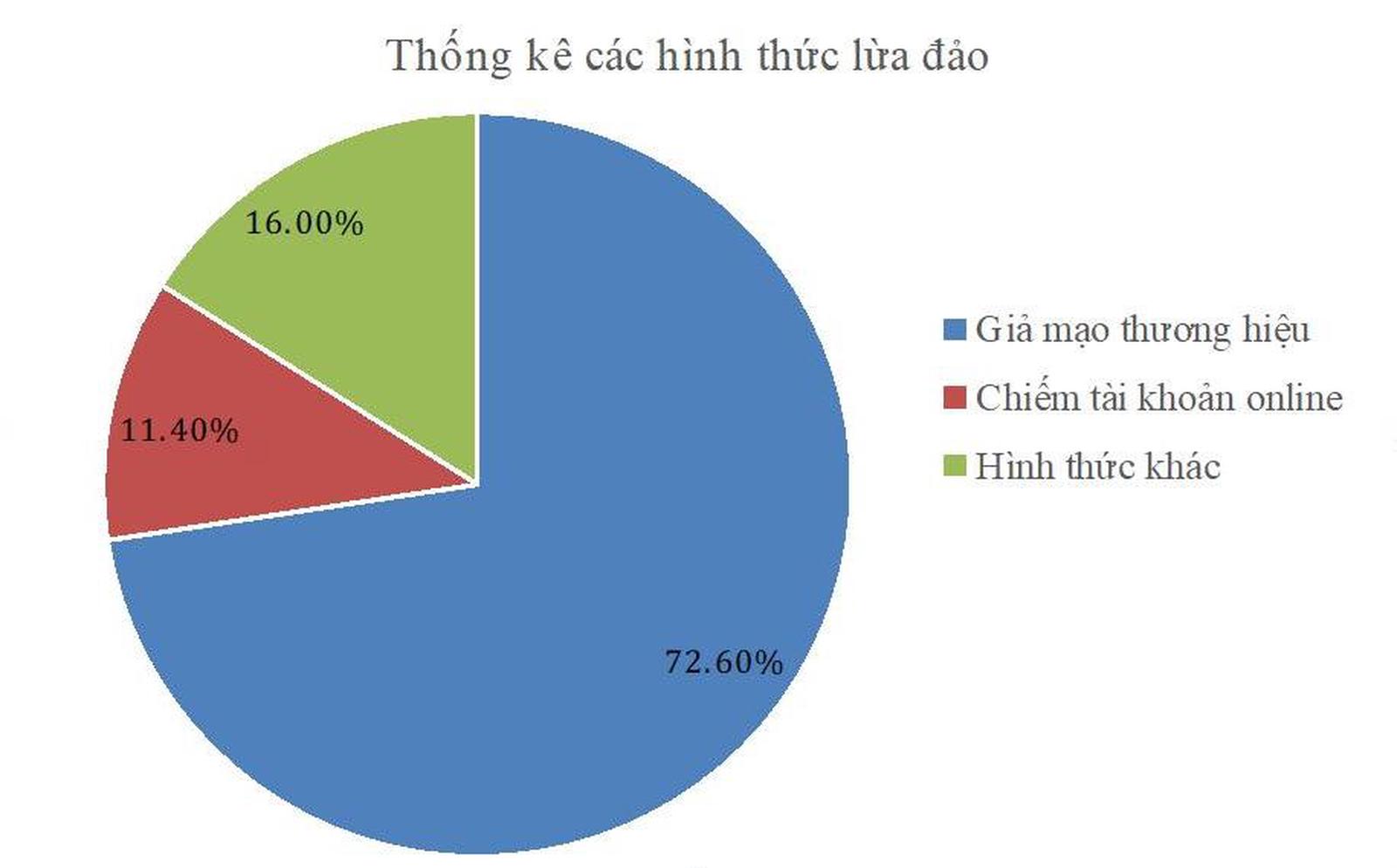 Các đối tượng lừa đảo thường áp dụng nhiều biện pháp khác, có thể chia làm 3 nhóm chính: Giả mạo thương hiệu chiếm 72,6% (giả mạo SMS, website, số điện thoại của cơ quan chức năng, ngân hàng, công ty tài chính,…); chiếm đoạt tài khoản online (Facebook, Zalo,..) chiếm 11,4%; các hình thức khác (việc làm online, lừa đảo tình cảm, app cho vay...) chiếm 16%.