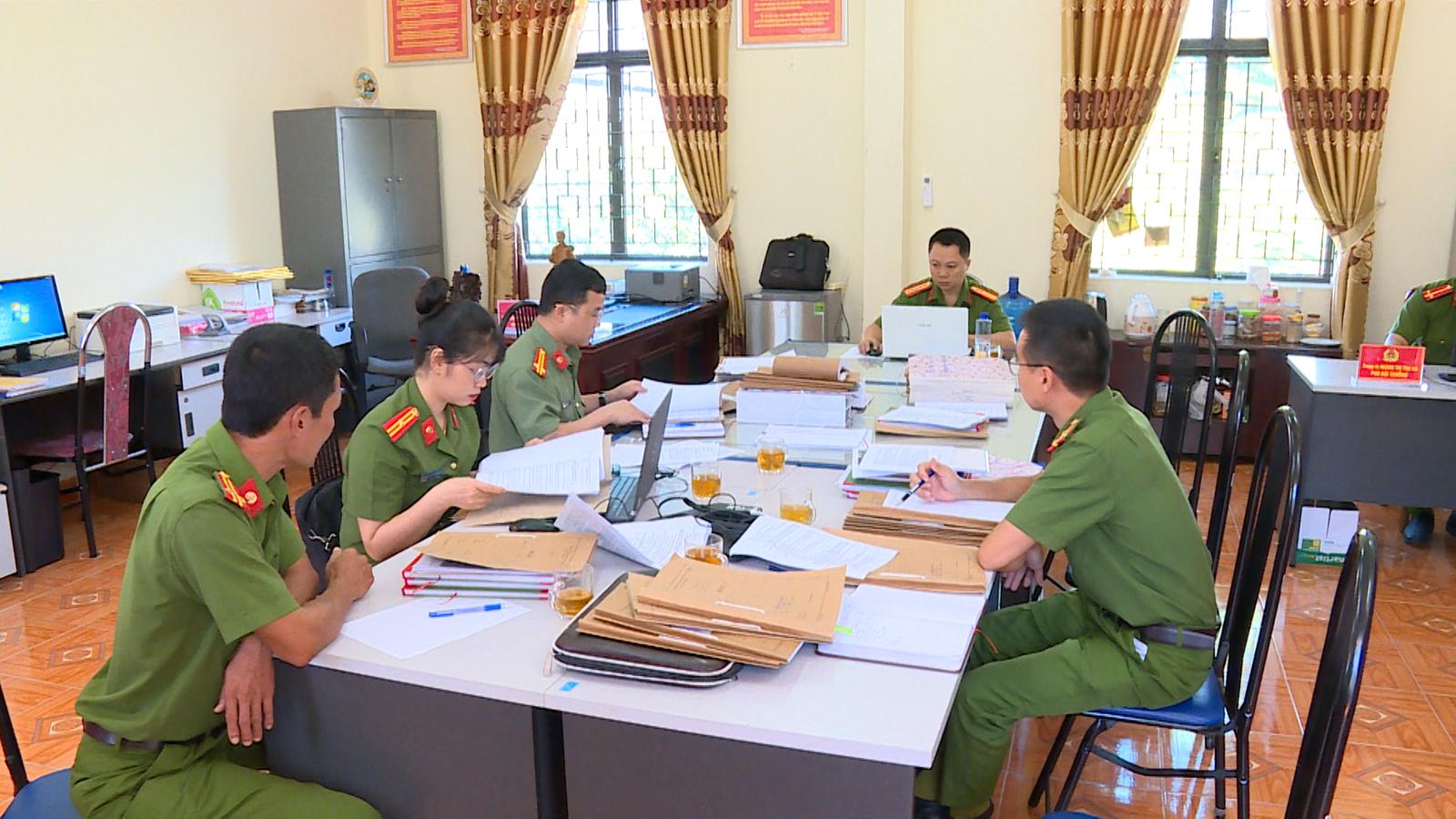 Tổ công tác tiến hành kiểm tra hồ sơ của lực lượng cảnh sát khu vực Công an huyện Mai Sơn. Ảnh: Trần Thắng