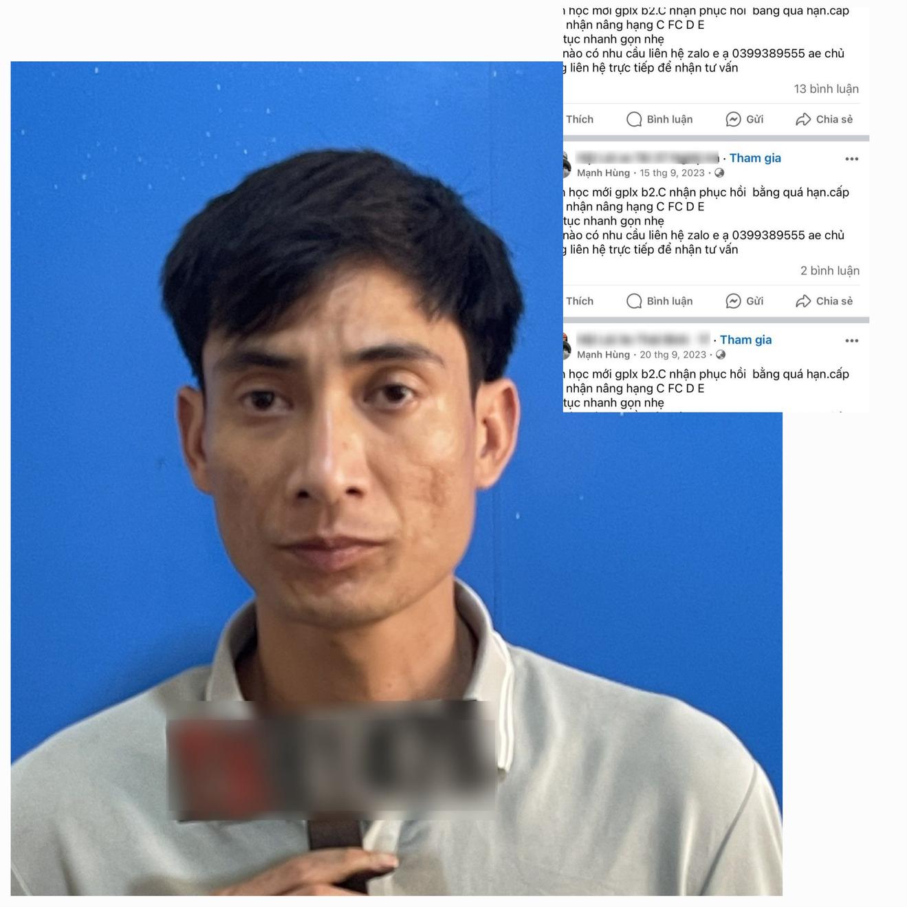 Trước đó, qua công tác nắm tình hình trên không gian mạng, Công an huyện Tân Kỳ phát hiện chủ tài khoản facebook “Mạnh Hùng” đăng tải nội dung nhận làm hồ sơ thi, cấp đổi, nâng hạng, phục hồi giấy phép lái xe ô tô có biểu hiện nghi vấn hoạt động phạm tội lừa đảo chiếm đoạt tài sản.