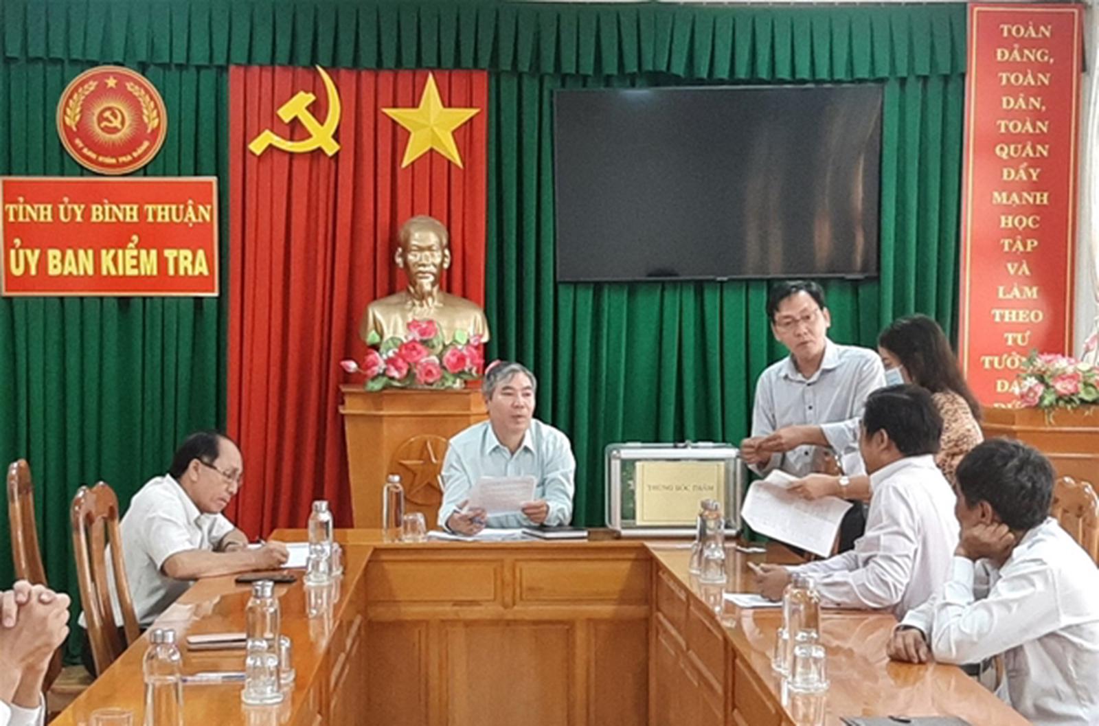 Ủy ban Kiểm tra Tỉnh ủy Bình Thuận tổ chức bốc thăm người được xác minh tài sản, thu nhập. Ảnh: ubkttu.binhthuan.dcs.vn