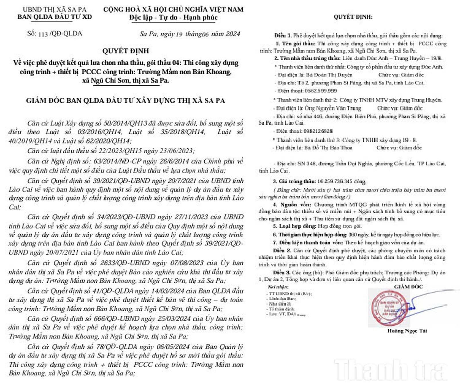 Cần phải nhấn mạnh rằng, cả Công ty TNHH Xây dựng 19 – 8 và Công ty TNHH Một thành viên Xây dựng Trung Huyền đều là những doanh nghiệp có trụ sở trên địa bàn tỉnh Lào Cai. Hơn nữa, đây cũng đều là những doanh nghiệp có mối quan hệ “mật thiết” với Ban QLDA ĐTXD thị xã Sa Pa khi đều trúng 100% các gói thầu tham dự tại chủ đầu tư này.