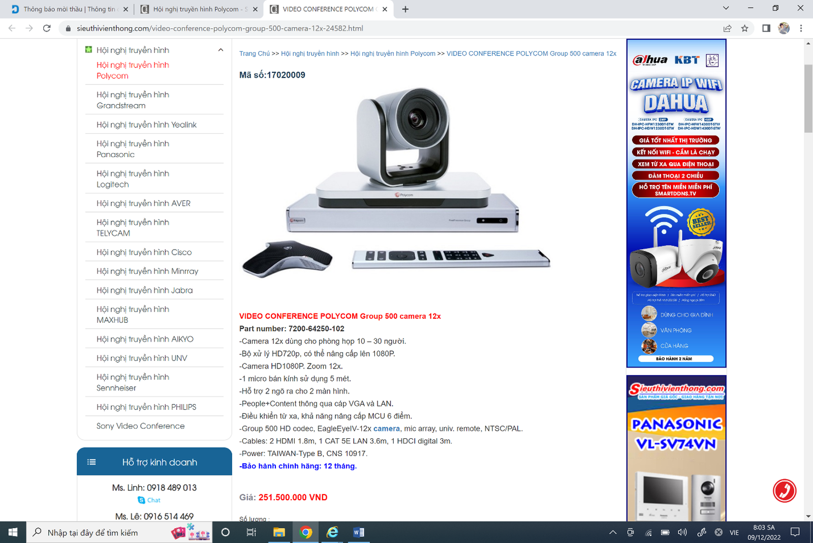 Thiết bị hội nghị truyền hình Polycom Group 500 - 12x giá thị trường (Siêu thị viễn thông) 251.500.000 đồng. Giá trúng thầu 451.550.000 đồng