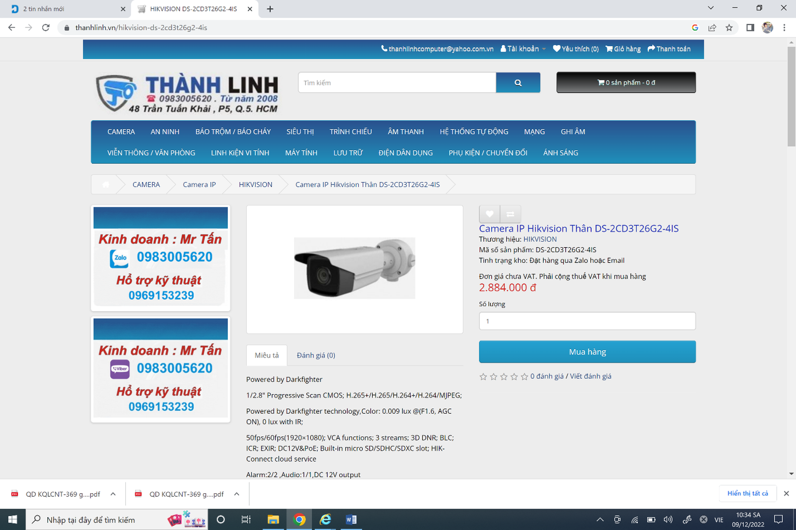 Camera IP Hikvision Thân DS-2CD3T26G2-4IS Thành Linh Camera phân phối 2.884.000 đồng/bộ. Giá trúng thầu 7.348.000 đồng/bộ