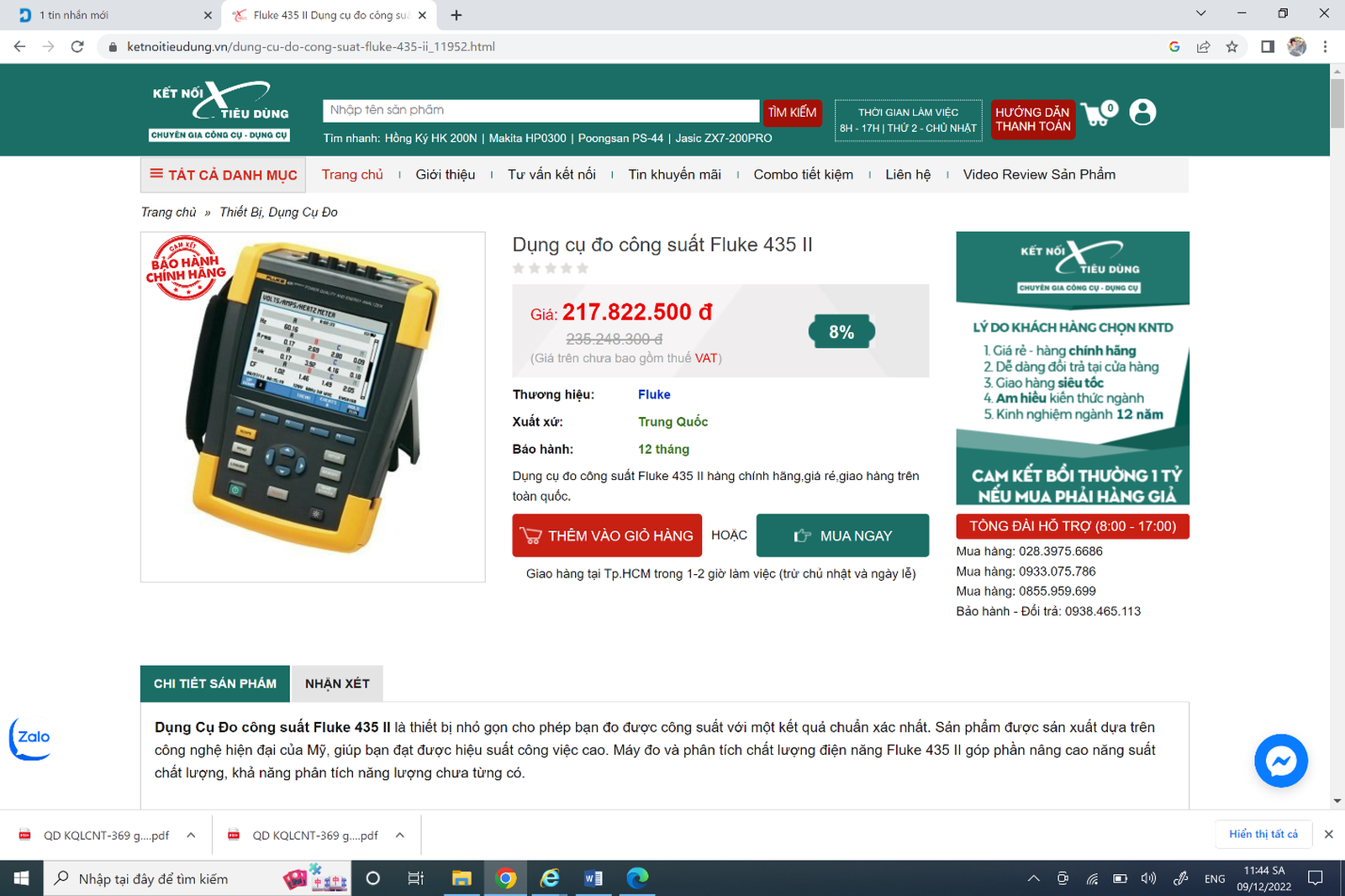 Máy đo chất lượng điện năng Fluke 435-II Kết nối tiêu dùng phân phối 217.822.500 đồng/bộ. Giá trúng thầu 358.600.000 đồng/bộ