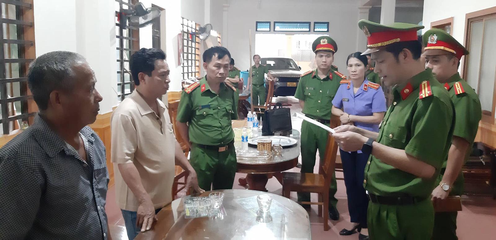 Người nhà đối tượng Hoàng Thị Hậu nghe tống đạt quyết định khám xét nhà ở