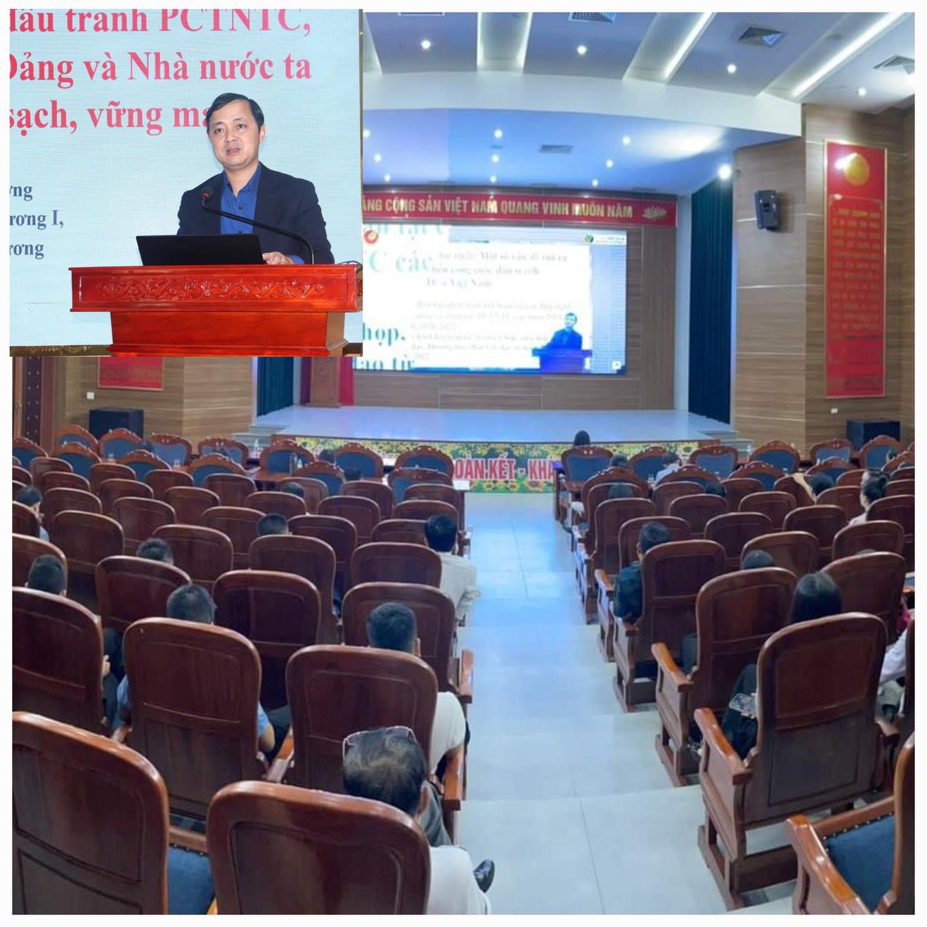 Tại hội nghị, các đại biểu tham dự đã được tiến sĩ Nguyễn Xuân Trường, Vụ trưởng Vụ Địa phương 1, Ban Nội chính Trung ương trực tiếp trao đổi nội dung của chuyên đề, qua đó quán triệt những tư tưởng chủ đạo, nội dung cơ bản, cốt lõi của cuốn sách "Kiên quyết, kiên trì đấu tranh phòng, chống tham nhũng, tiêu cực, góp phần xây dựng Đảng và Nhà nước ta ngày càng trong sạch, vững mạnh" của Tổng Bí thư Nguyễn Phú Trọng, Trưởng Ban Chỉ đạo Trung ương về phòng, chống tham nhũng, tiêu cực.