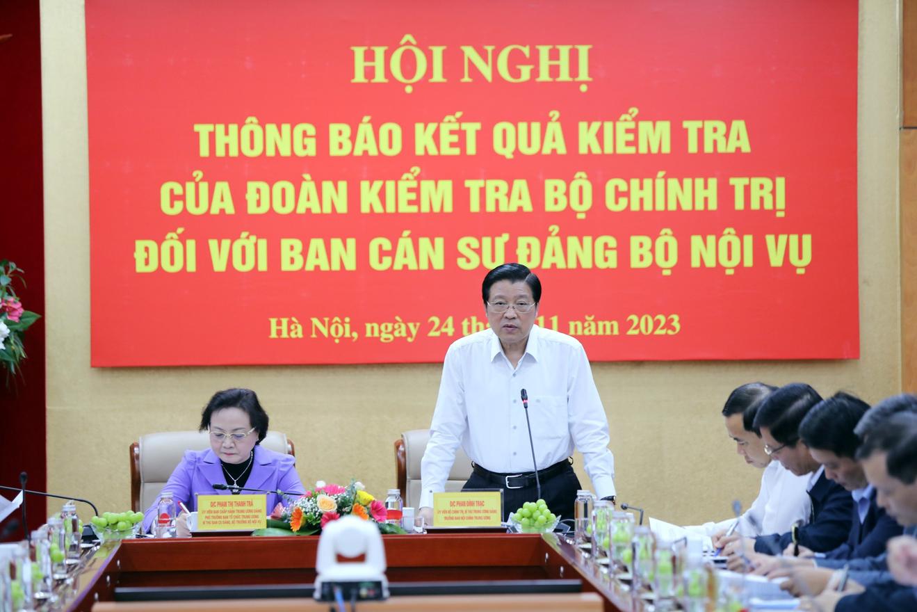 Trưởng Ban Nội chính Trung ương Phan Đình Trạc yêu cầu Ban Cán sự Đảng Bộ Nội vụ cần sớm rà soát, đánh giá việc thực hiện Nghị quyết số 26-NQ/TW, trong đó tập trung rà soát, đánh giá việc thực hiện các mục tiêu, nhiệm vụ, giải pháp, nhất là các nhiệm vụ xây dựng thể chế về công tác cán bộ; tăng cường kiểm tra, thanh tra về công tác cán bộ theo chức năng, nhiệm vụ…