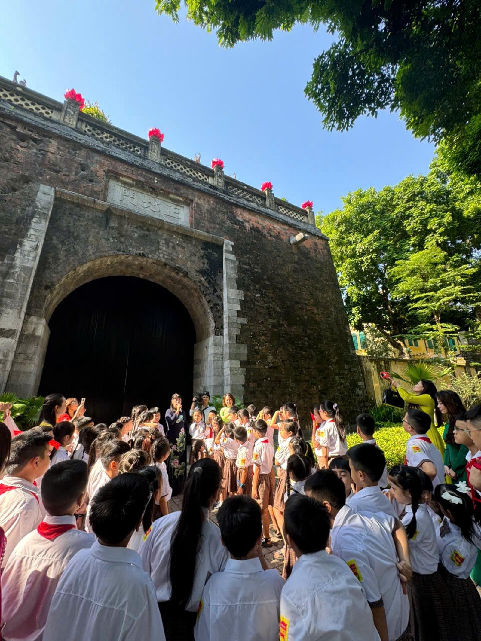 Các em học sinh của Trường Tiểu học Đông Ngạc A (Bắc Từ Liêm, Hà Nội) được các thày cô giáo cho đến thăm Hoàng Thành Thăng Long, nơi gắn liền với bề dày năm lịch sử và truyền thống dựng nước và giữ nước của dân tộc.