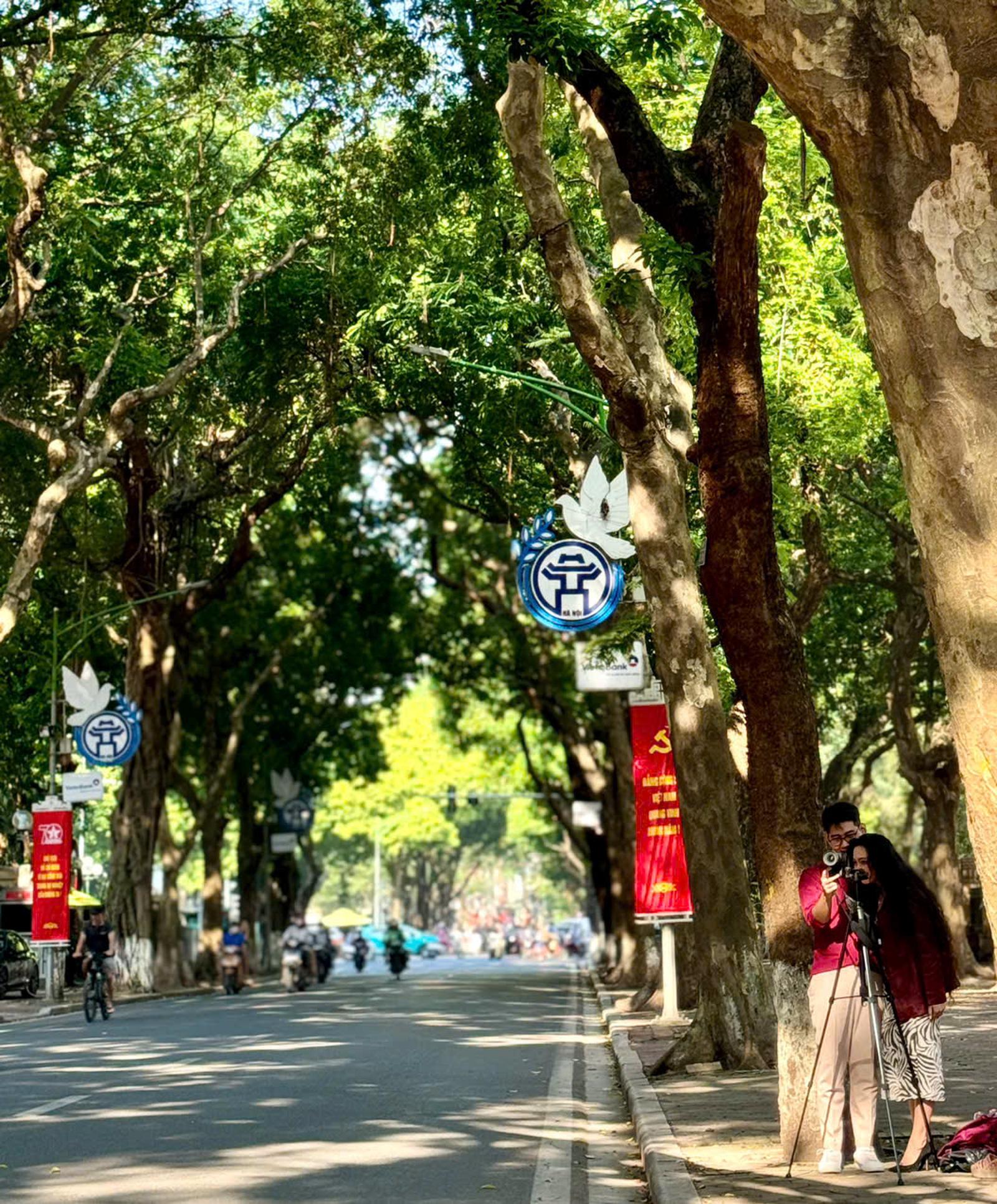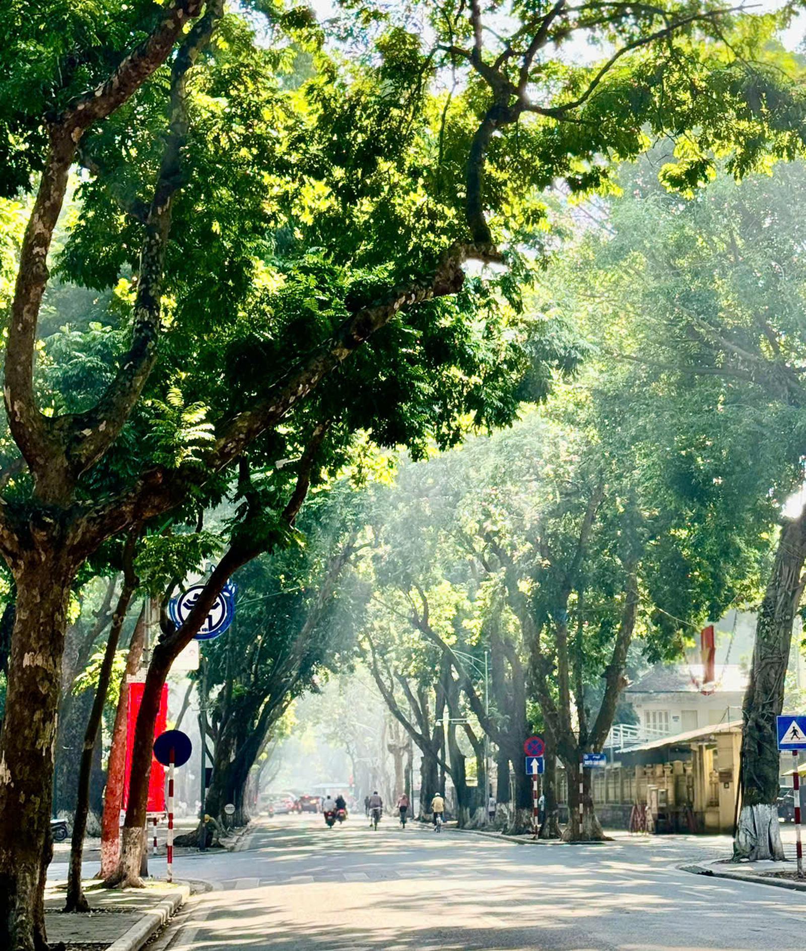 Những con đường rợp bóng cây trên con phố Phan Đình Phùng xanh mát với dòng người và xe tấp nập qua lại, những vẫn thoang thoảng hương hoa sữa nồng nàn, quyến rũ mang lại điểm nhấn tuyệt với cho mùa thu Hà Nội.