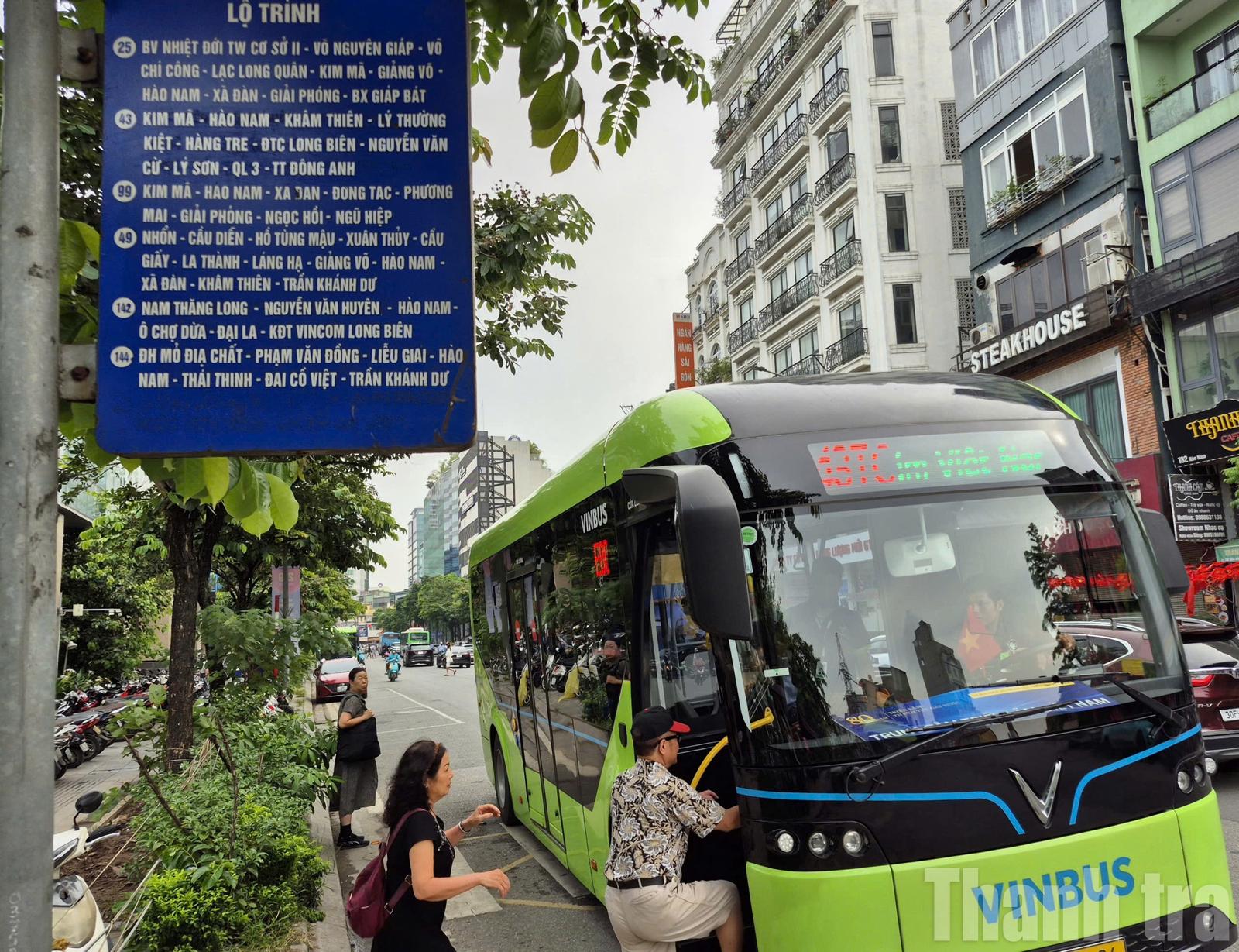 Hạn chế phương tiện cá nhân, người dân sử dụng xe buýt điện số 43 TC rời ga Cát Linh để sang Đông Anh dự triển lãm. Ảnh: TM