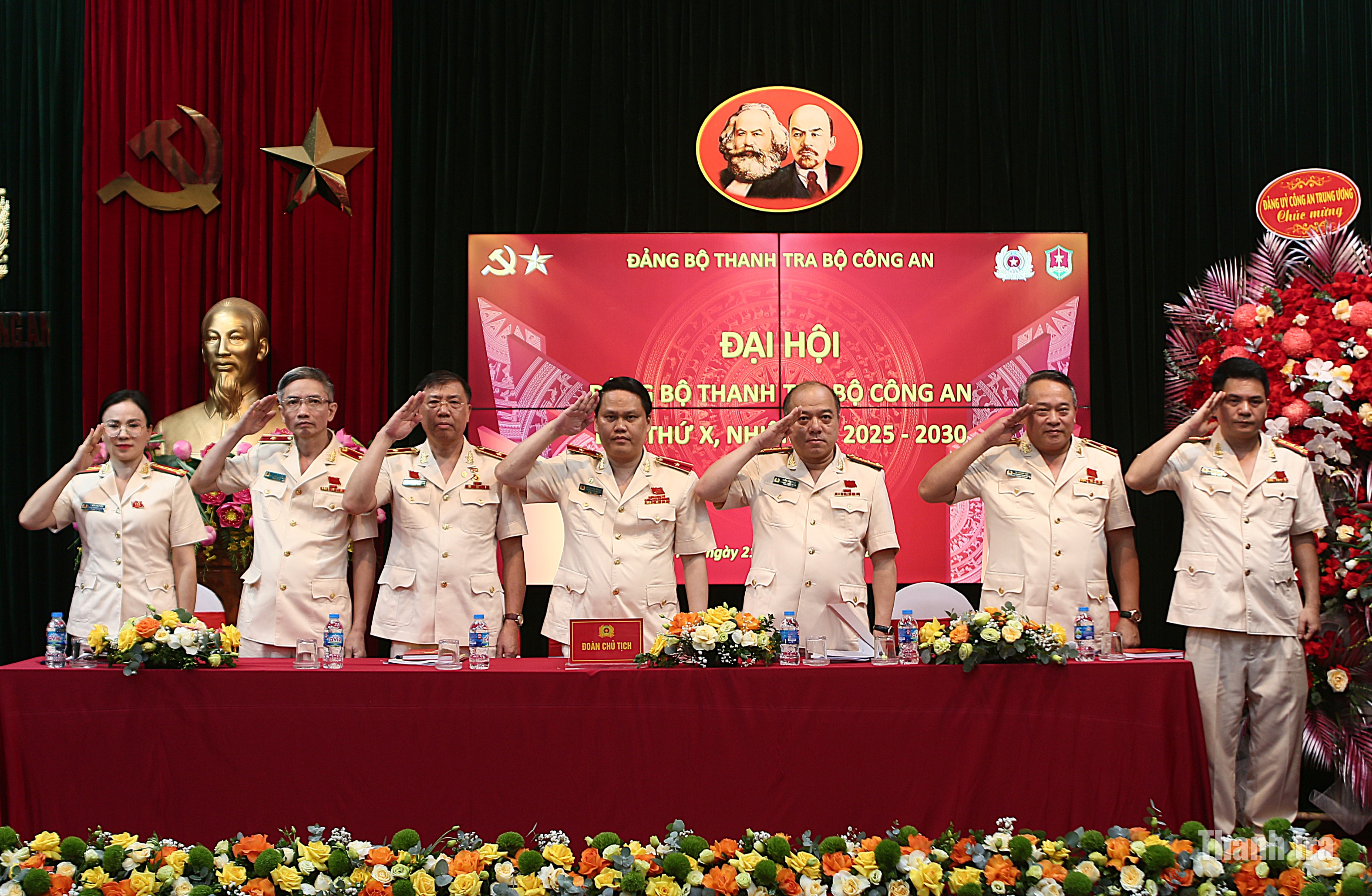 Ngày 22/8, tại Hà Nội, Đại hội Đảng bộ Thanh tra Bộ Công an lẩn thứ X, nhiệm kỳ 2025 – 2030 đã khai mạc, với sự tham dự của 134 đảng viên. Thượng tướng Trần Quốc Tỏ, Ủy viên Trung ương Đảng, Phó Bí thư Đảng ủy Công an Trung ương, Thứ trưởng Bộ Công an dự và chỉ đạo Đại hội.
