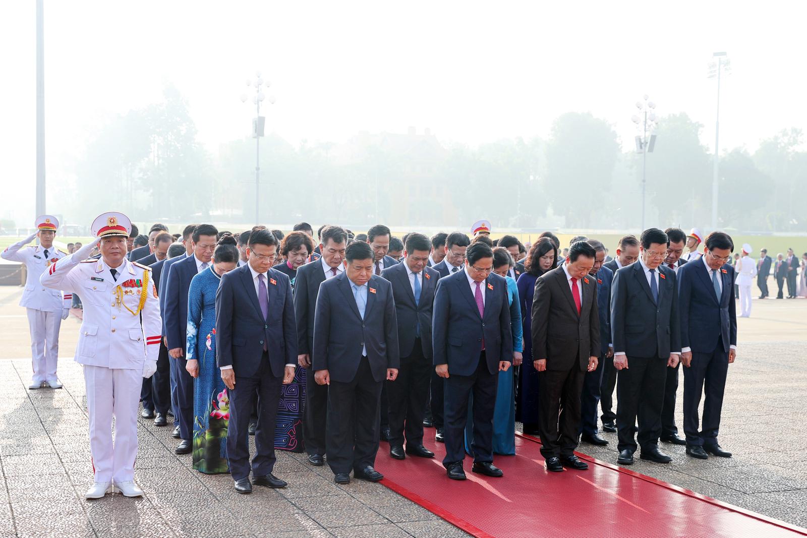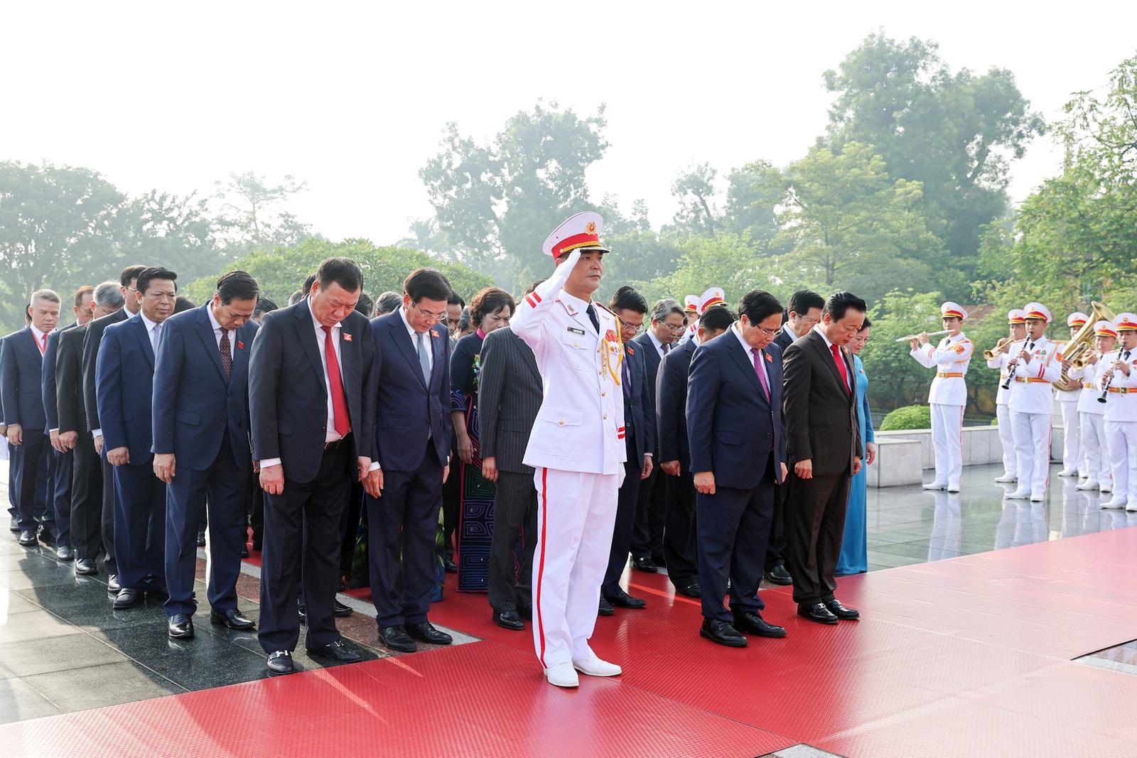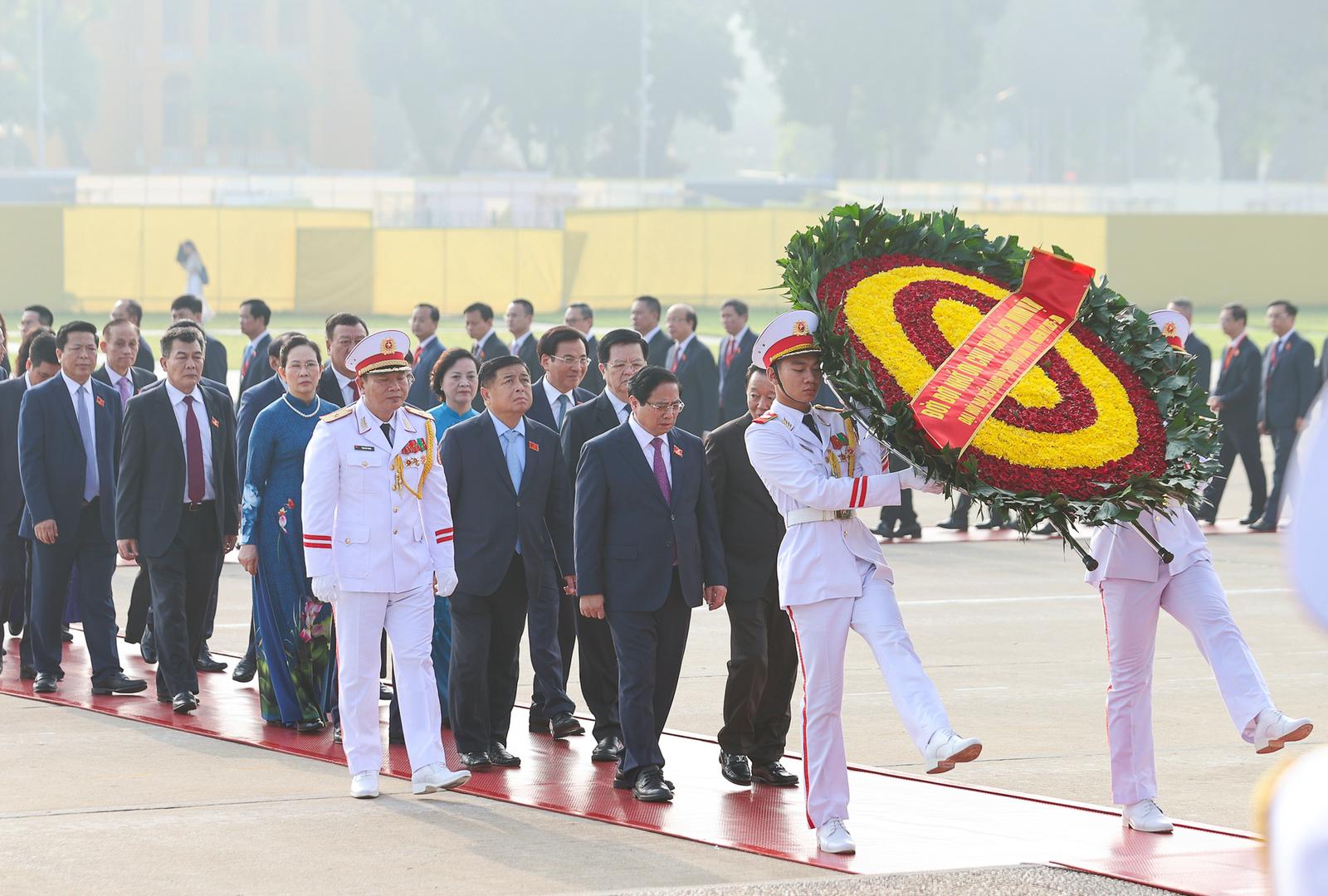 Bí thư Đảng ủy Chính phủ, Thủ tướng Phạm Minh Chính, dẫn đầu Đoàn đại biểu dự Đại hội Đảng bộ Chính phủ lần thứ nhất, nhiệm kỳ 2025-2030 vào Lăng viếng Chủ tịch Hồ Chí Minh. Ảnh: Đoàn Bắc