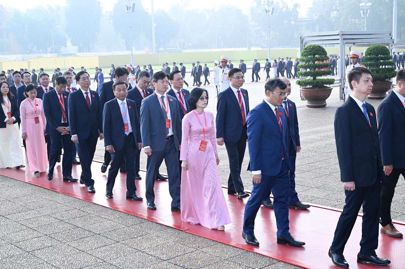 Trước khi vào phiên trù bị, Đoàn đại biểu dự Đại hội Đảng bộ Chính phủ vào Lăng viếng Chủ tịch Hồ Chí Minh.