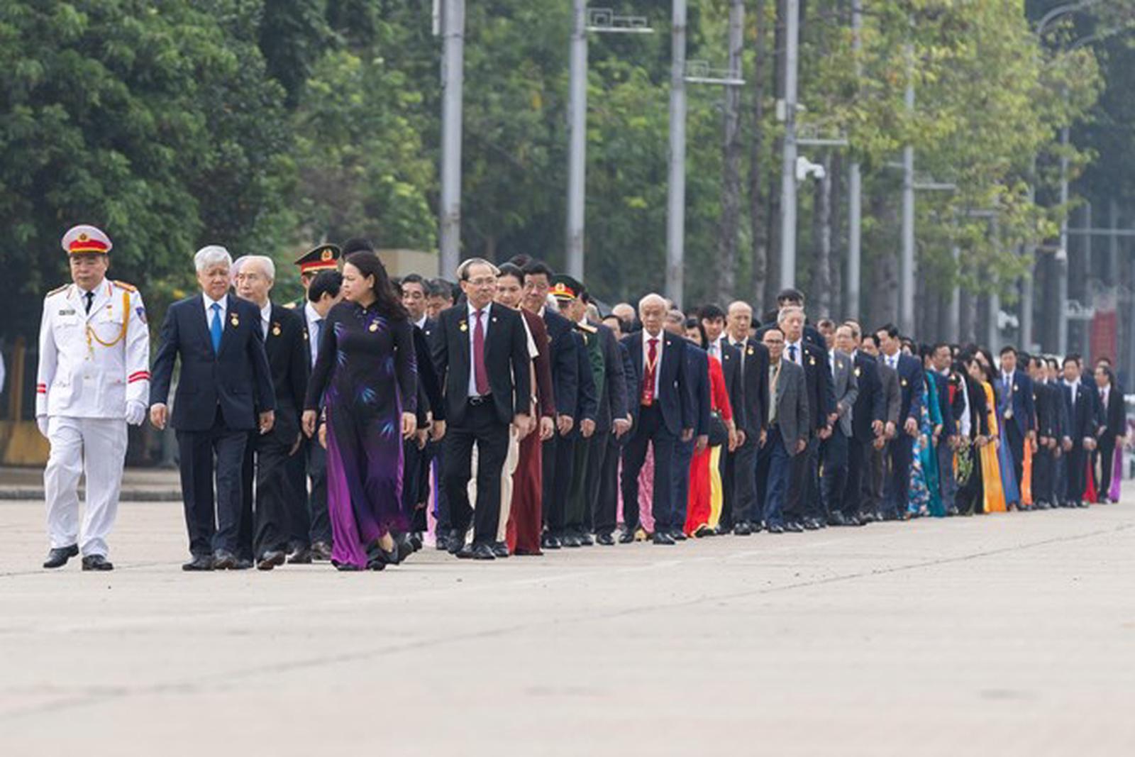 Đoàn đã bày tỏ lòng thành kính, tưởng nhớ công lao to lớn của Chủ tịch Hồ Chí Minh đối với sự nghiệp xây dựng và củng cố vững chắc khối đại đoàn kết toàn dân tộc. Vòng hoa mang dòng chữ “Đời đời nhớ ơn Chủ tịch Hồ Chí Minh vĩ đại”.
