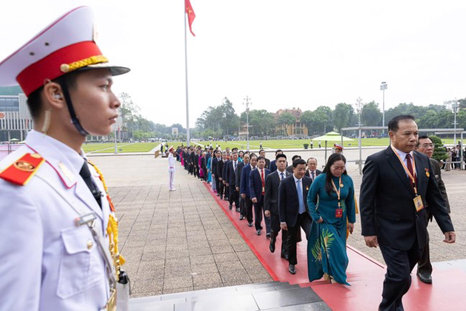 Đoàn đại biểu đã nghiêng mình tưởng nhớ các anh hùng liệt sỹ - những người con ưu tú của dân tộc đã không tiếc máu xương, dũng cảm chiến đấu, hy sinh vì sự nghiệp đấu tranh giải phóng dân tộc, vì nền độc lập, tự do của Tổ quốc, vì hạnh phúc của Nhân dân. Vòng hoa của đoàn mang dòng chữ “Đời đời nhớ ơn các anh hùng liệt sỹ”.