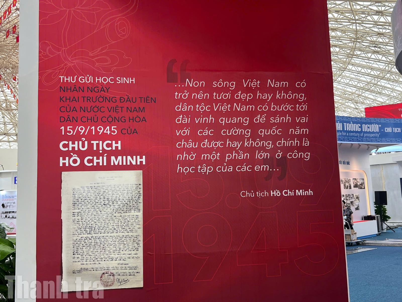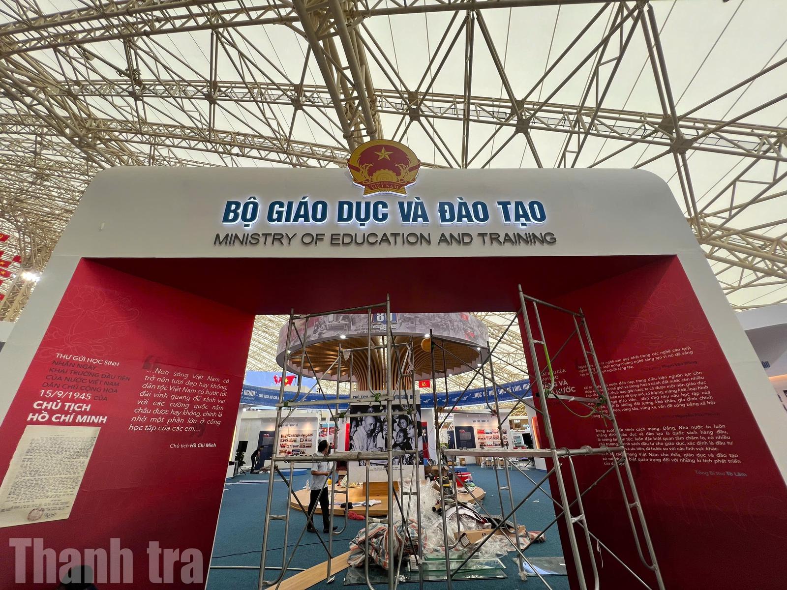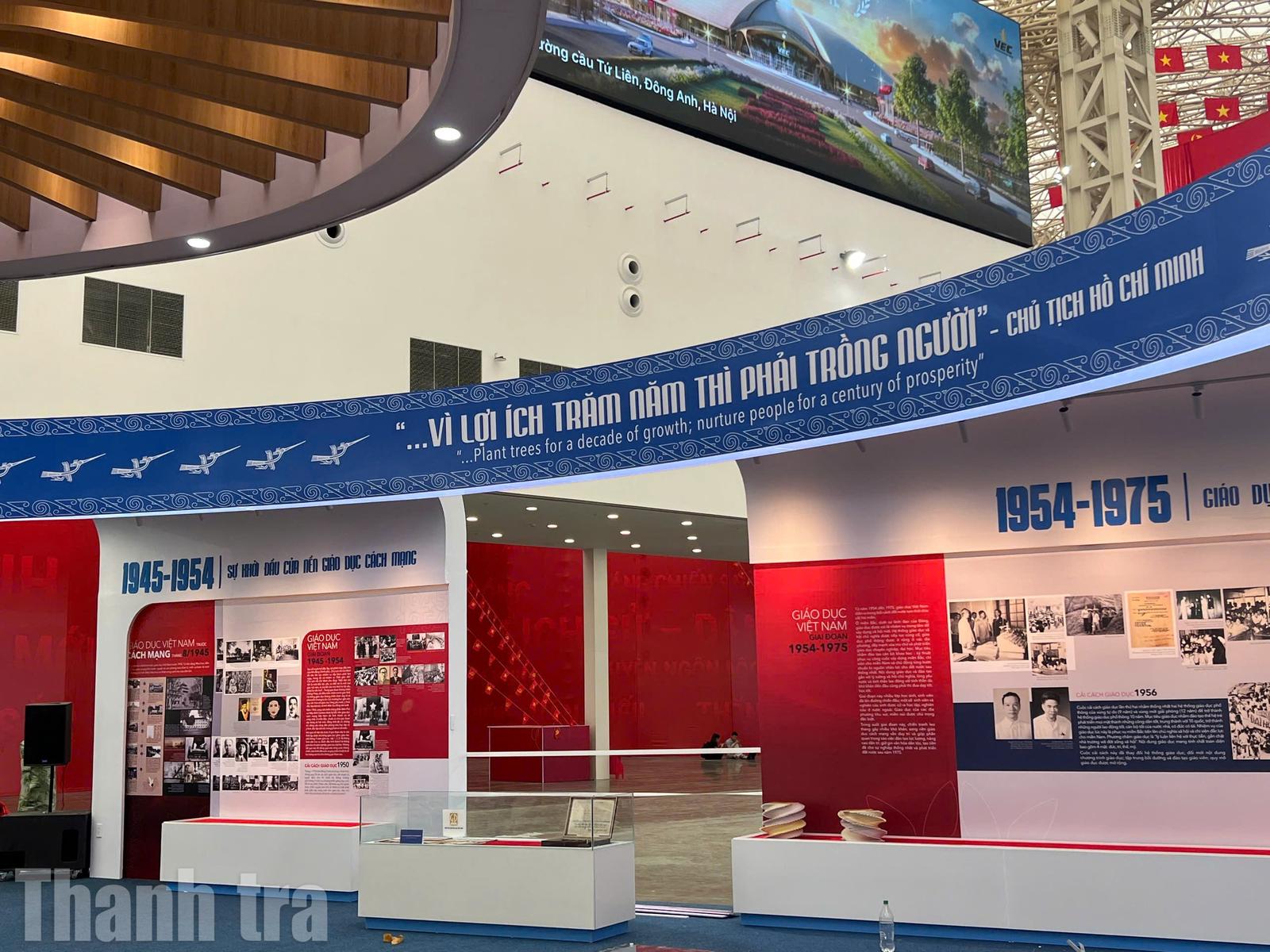 Bộ Giáo dục và Đào tạo cũng dành riêng một khu trưng bày về giáo dục và đào tạo tạo hướng tới tương lai, cùng đất nước bước vào kỷ nguyên giàu mạnh và thịnh vượng với thông điệp trọng tâm: Kỷ nguyên vươn mình đột phá phát triển giáo dục và đào tạo. Ảnh: B.S