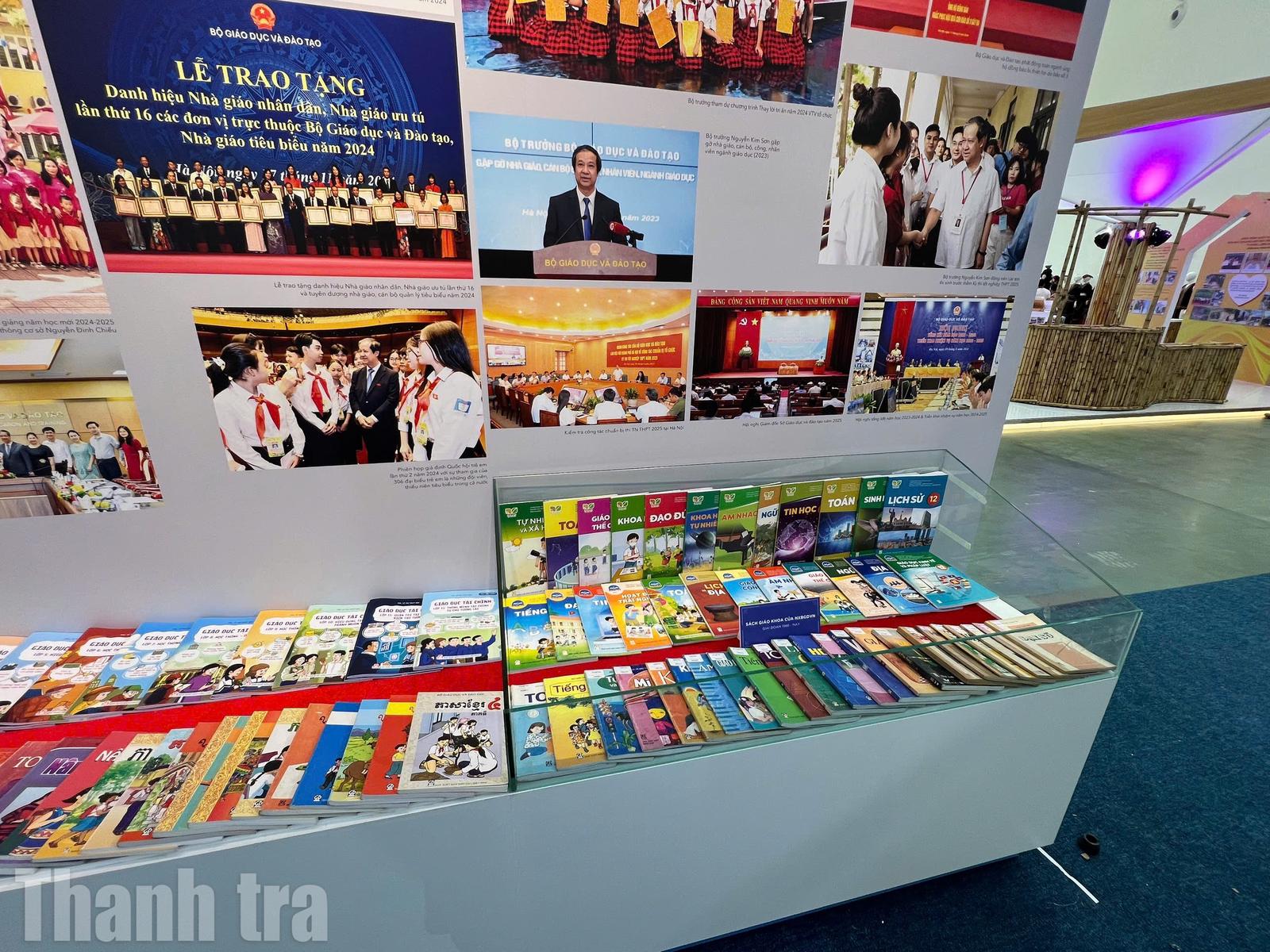 Những thành tựu và các sản phẩm sách giáo khoa tại gian trưng bày của Bộ Giáo dục và Đào tạo. Ảnh: B.S