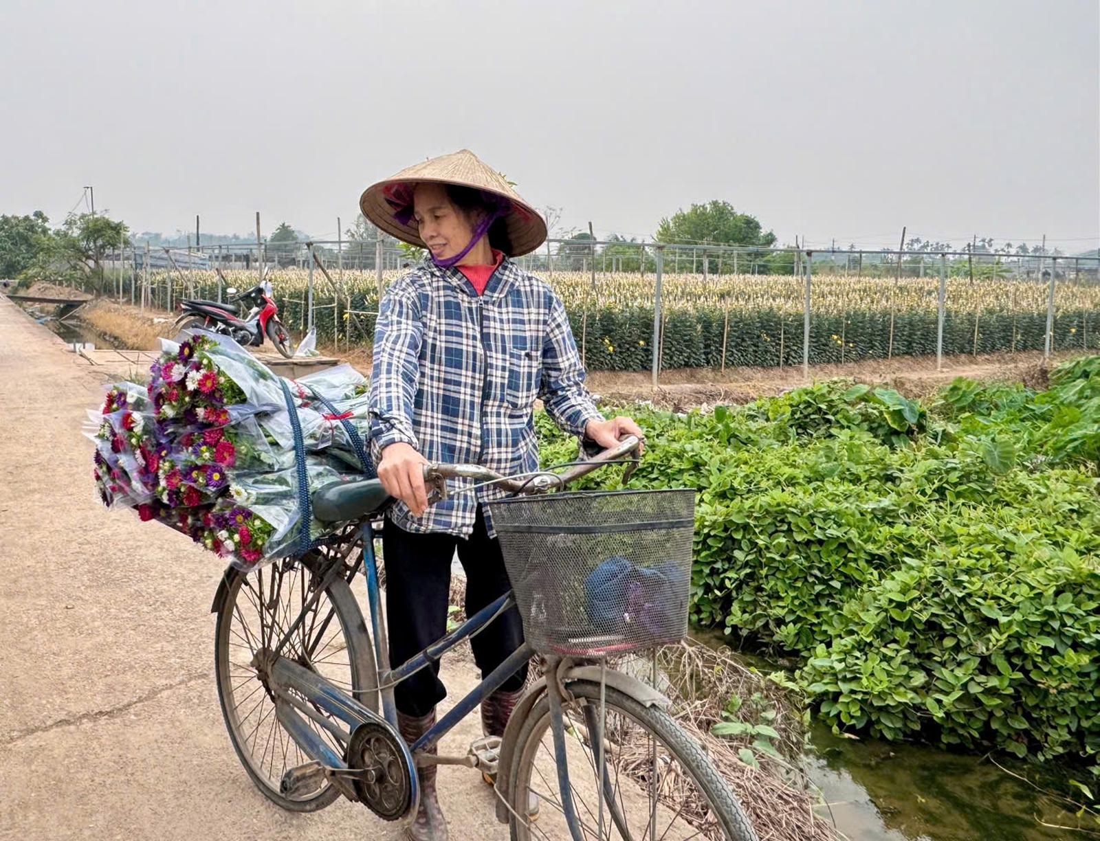 Người dân trồng hoa Tây Tựu thường thì sẽ bán cho thương lái đến thu mua, nhưng thi thoảng các bà các chị lại cắt một ít để mang ra chợ bán vào buổi chợ hôm sau.