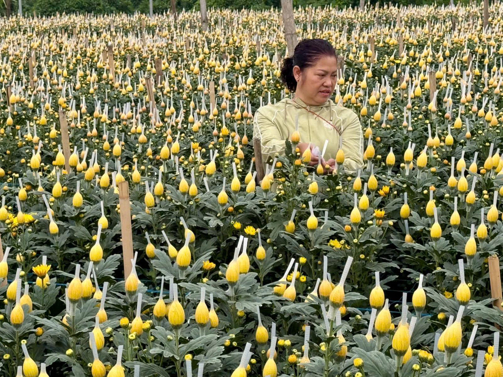 "Giá một cành hoa cúc bán buôn cho thương lái tại vườn chỉ khoảng hơn 2 ngàn đồng, hồng thơm giá từ 2-4 ngàn đồng tùy thuộc vào độ dài của của cành, cành hoa ly dao động từ 22-40 ngàn đồng phụ thuộc vào giống ly đơn hay cành có nhiều tai... hạch toán sau khi trừ giống vốn, phân bón, thuốc trừ sâu thì cơ bản thu nhập cũng chỉ là lấy công làm lãi", anh Dục nói.