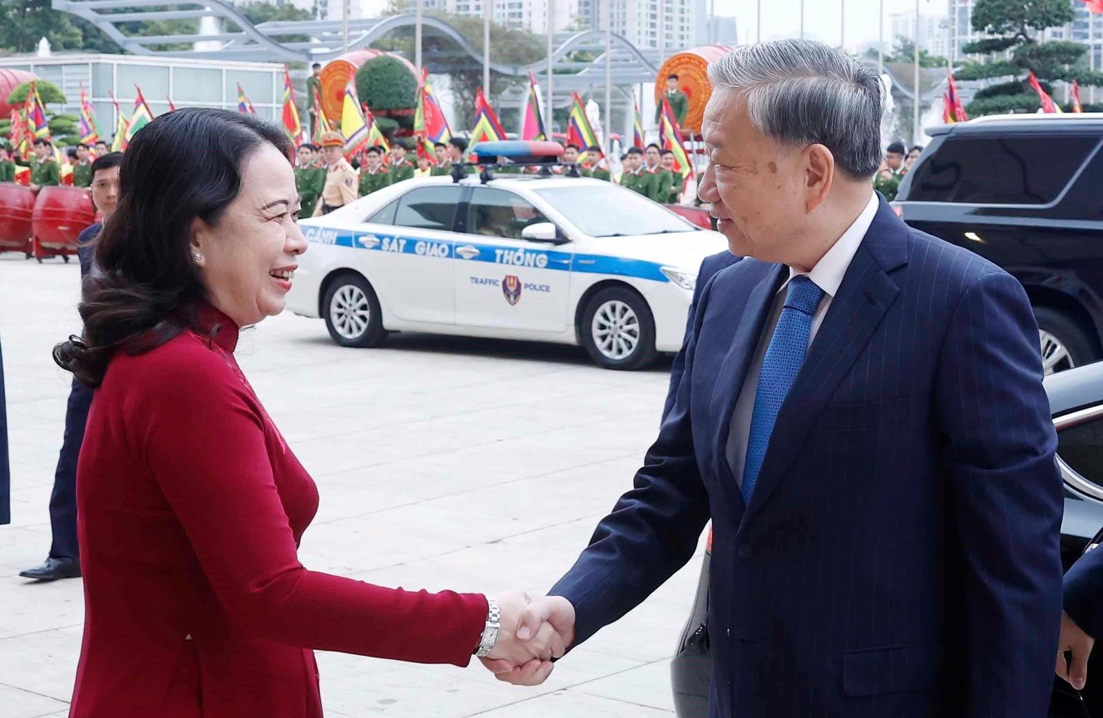 Tổng Bí thư Tô Lâm, nguyên Tổng Bí thư Nông Đức Mạnh, Chủ tịch nước Lương Cường, Thủ tướng Phạm Minh Chính, lãnh đạo, nguyên lãnh đạo Đảng, Nhà nước, cùng hơn 2.200 đại biểu sáng 27/12 dự Đại hội Thi đua yêu nước toàn quốc lần thứ XI, tham quan không gian trưng bày.