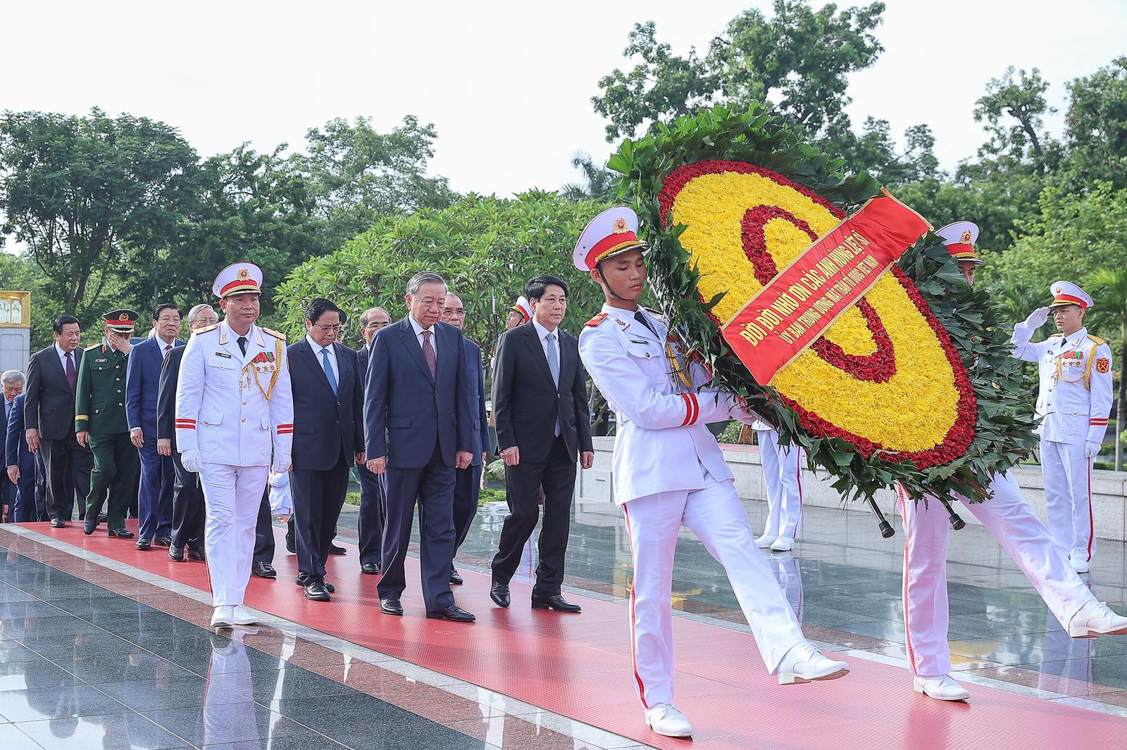 Nhân kỷ niệm 78 năm Ngày Thương binh - liệt sĩ (27/7/1947 - 27/7/2025), sáng 24/7, lãnh đạo, nguyên lãnh đạo Đảng, Nhà nước, Mặt trận Tổ quốc Việt Nam đặt vòng hoa, vào Lăng viếng Chủ tịch Hồ Chí Minh và tưởng niệm các anh hùng liệt sĩ tại Đài tưởng niệm trên đường Bắc Sơn (Ba Đình, Hà Nội).