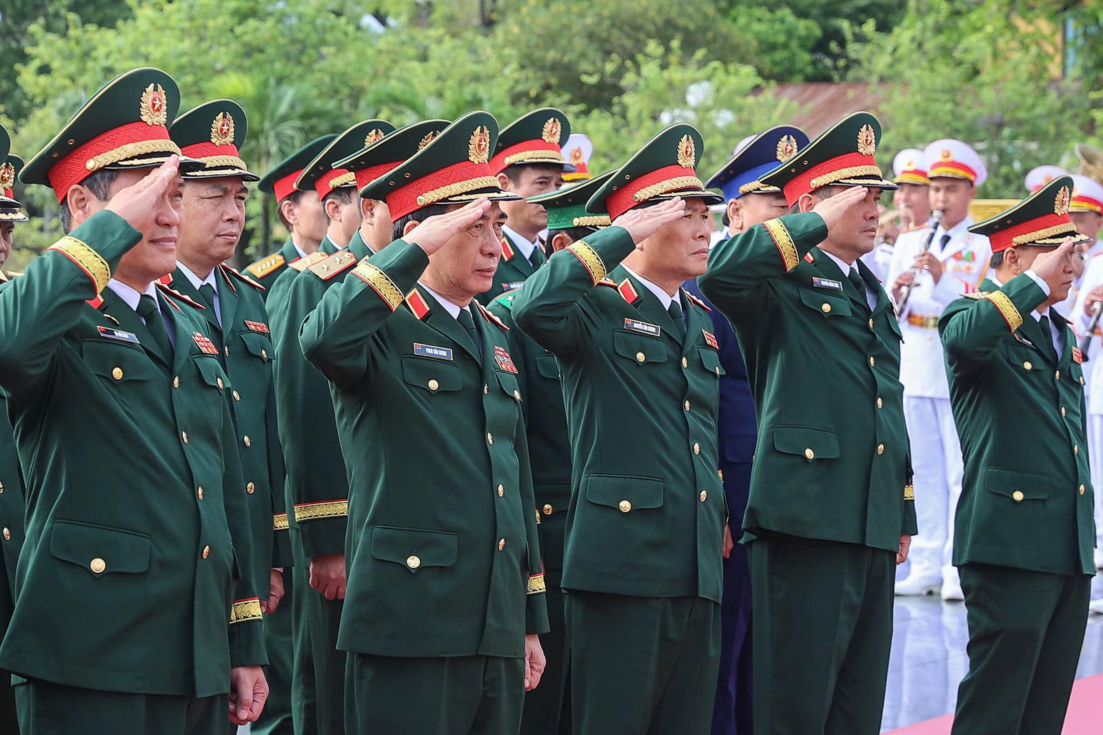 Dự lễ tưởng niệm có Tổng Bí thư Tô Lâm, Chủ tịch nước Lương Cường, Thủ tướng Phạm Minh Chính, Thường trực Ban Bí thư Trần Cẩm Tú, Chủ tịch Ủy ban Trung ương Mặt trận Tổ quốc Việt Nam Đỗ Văn Chiến.