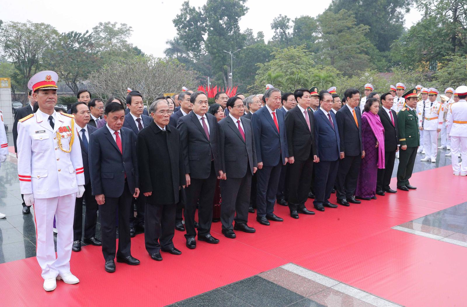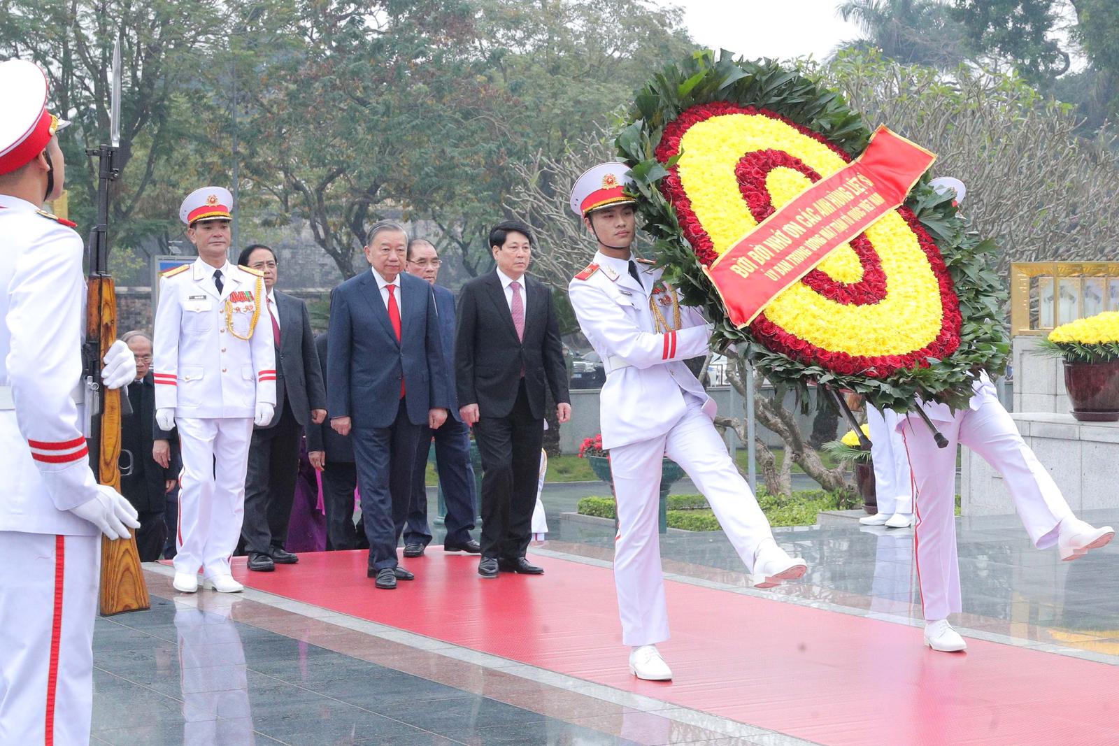 Đoàn đại biểu Ban Chấp hành Trung ương Đảng, Quốc hội, Chính phủ, Ủy ban Trung ương MTTQ Việt Nam do Tổng Bí thư Tô Lâm dẫn đầu dự Lễ viếng và đặt vòng hoa, vào Lăng viếng Chủ tịch Hồ Chí Minh.