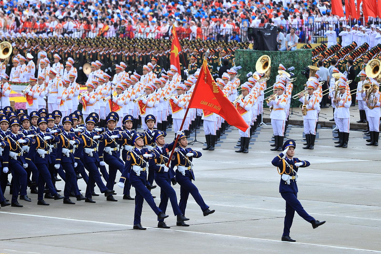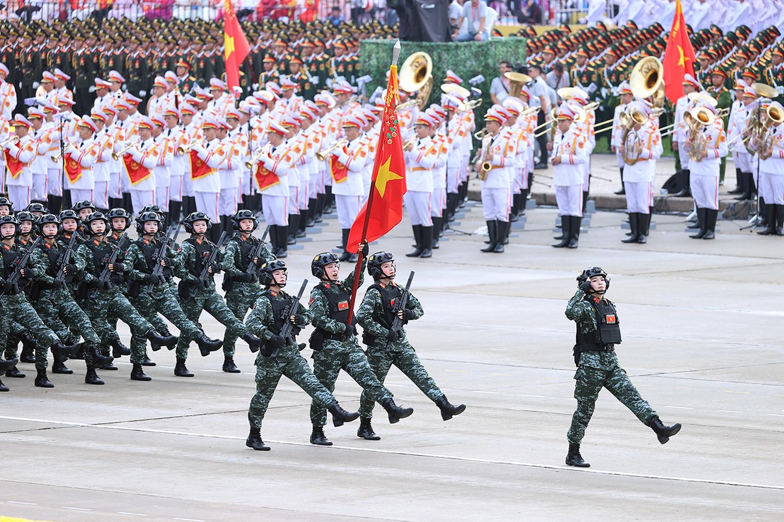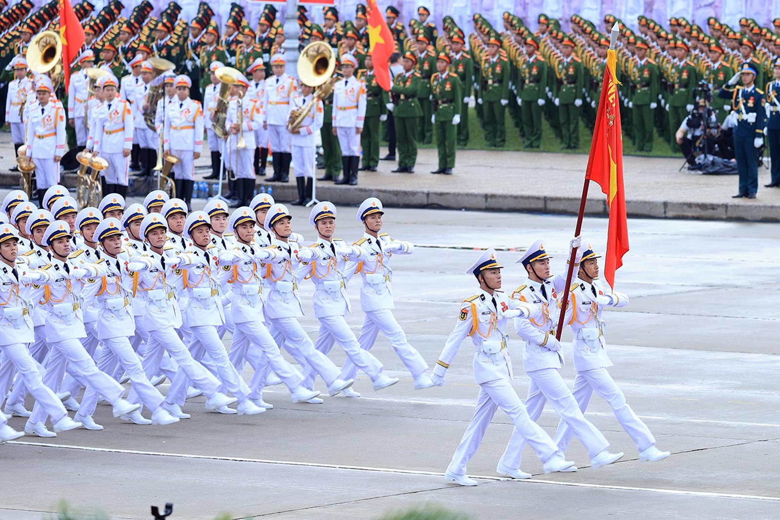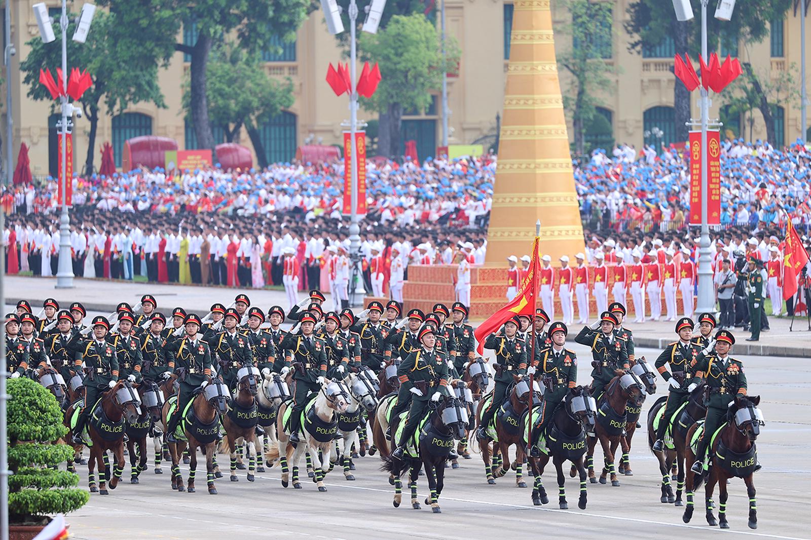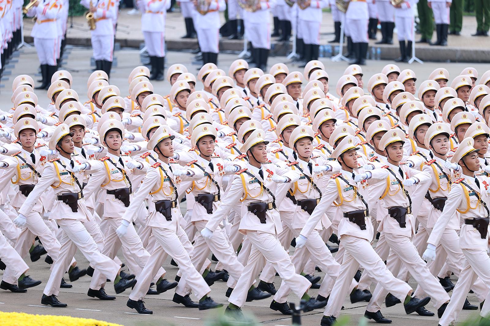Trong đó, thực hiện nhiệm vụ tại Quảng trường Ba Đình có 6 lực lượng gồm: Lực lượng rước đuốc truyền thống và tiêu binh Đài lửa; lực lượng Pháo lễ; lực lượng không quân bay chào mừng; lực lượng diễu binh, diễu hành; lực lượng đứng làm nền; lực lượng xếp hình, xếp chữ.