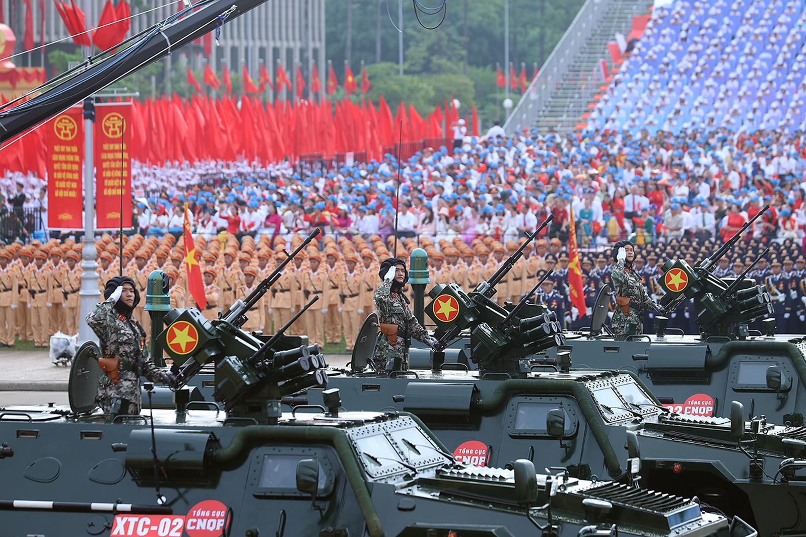 Đúng 6h45, từ Sân vận động quốc gia Mỹ Đình, cán bộ, chiến sĩ Lữ đoàn Pháo binh 45 thuộc Bộ Tư lệnh Pháo binh - Tên lửa đã khai hỏa 21 phát đại bác rền vang, báo hiệu buổi tổng duyệt bắt đầu.